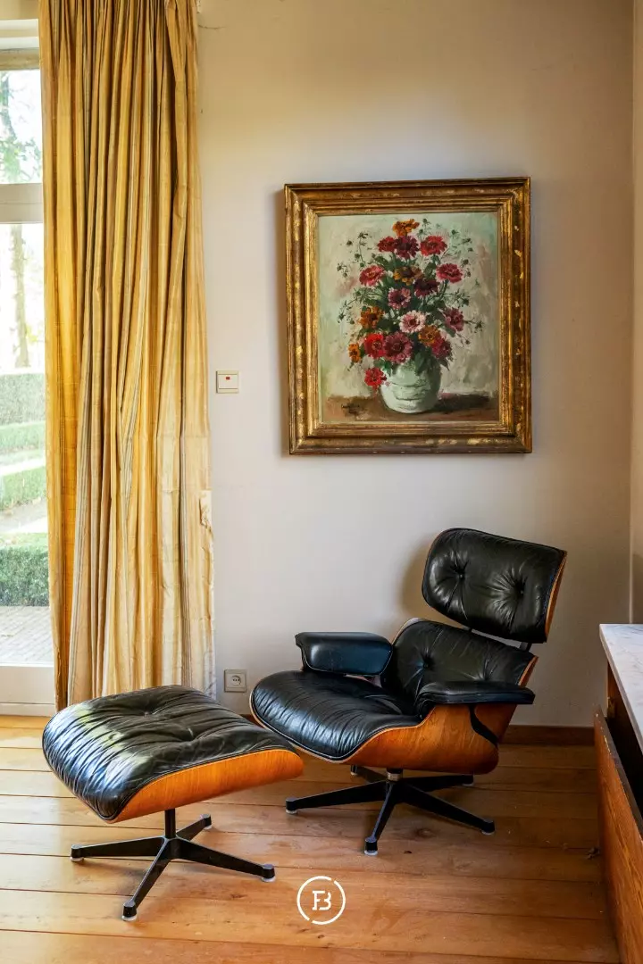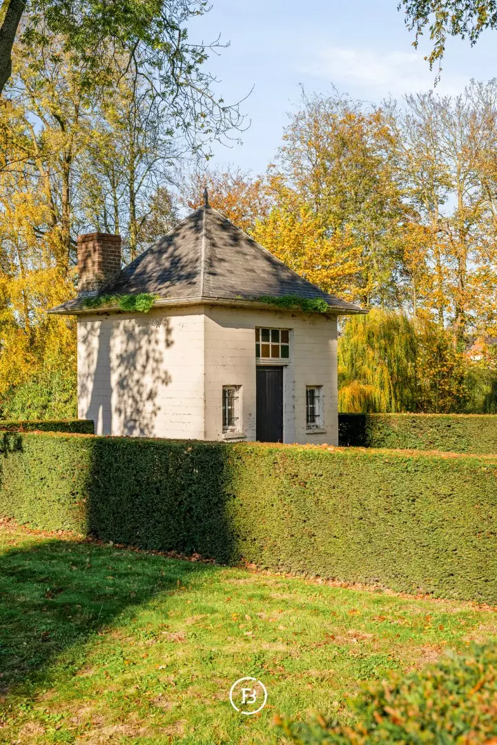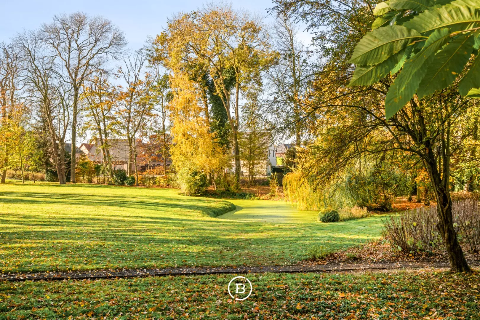 The park garden is an absolute asset: well-maintained, with a pond, vegetable garden, and tea house. Furthermore, the property has an outbuilding, double garage, and ample parking, making it multifunctional and practical.