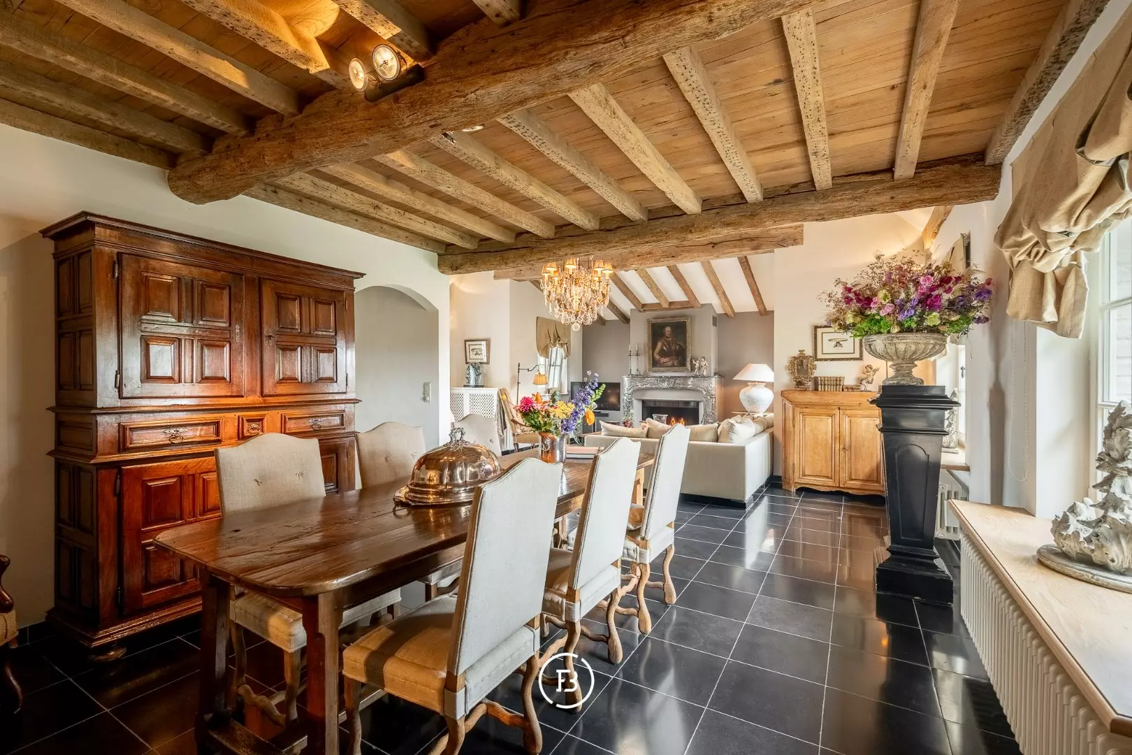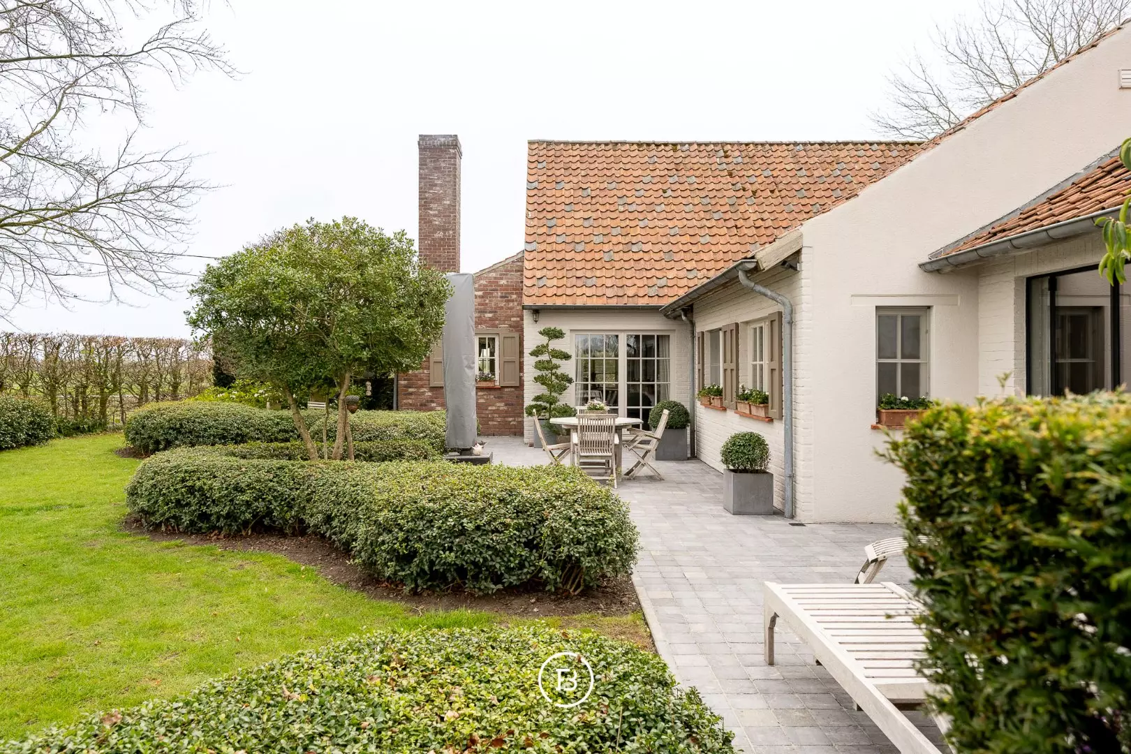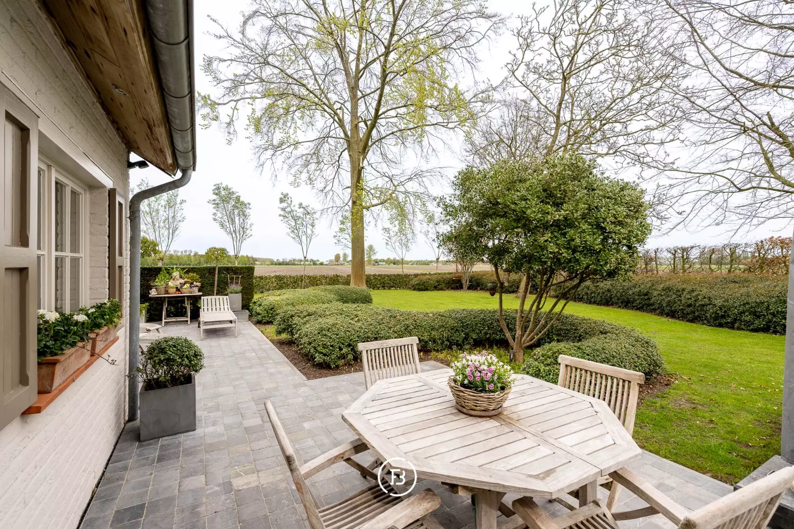This fully furnished, rural villa, designed by Pieter Porters, is situated on a plot of 1100 m2 and offers stunning views over vast fields and landscapes. It is located in an extremely peaceful location where privacy is guaranteed.