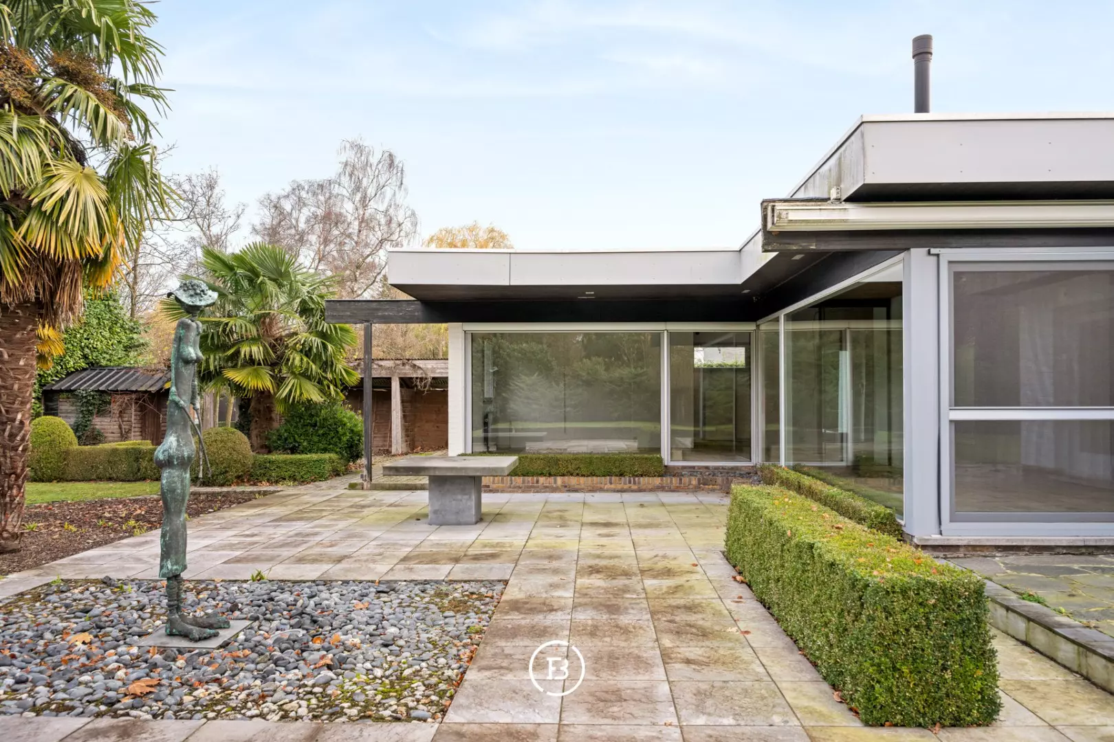 La propriété se compose de 2 parcelles de terrain de 2 000 m² chacune, sur laquelle est construite une spacieuse bungalow des années 70 sur la partie est. De belles terrasses et des palmiers adultes rendent l'environnement extérieur agréable et propice à la détente.