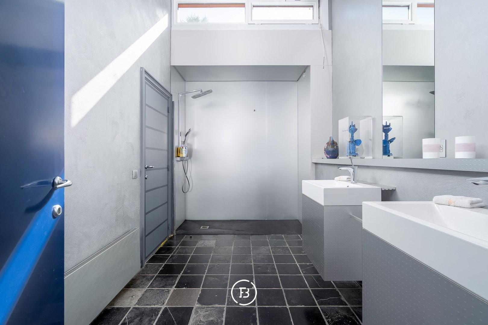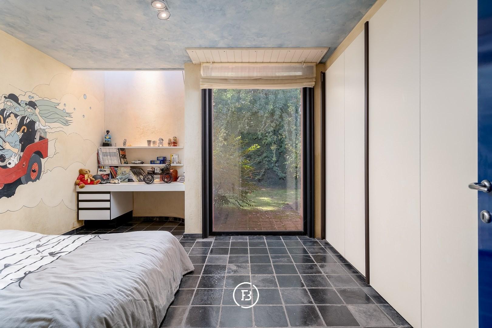 Verder vinden we drie ruime kinderslaapkamers met bureel, een ruime badkamer, een logeerkamer met eigen badkamer, een royale masterbedroom met dressing en badkamer ensuite en een zeer praktische wasplaats.