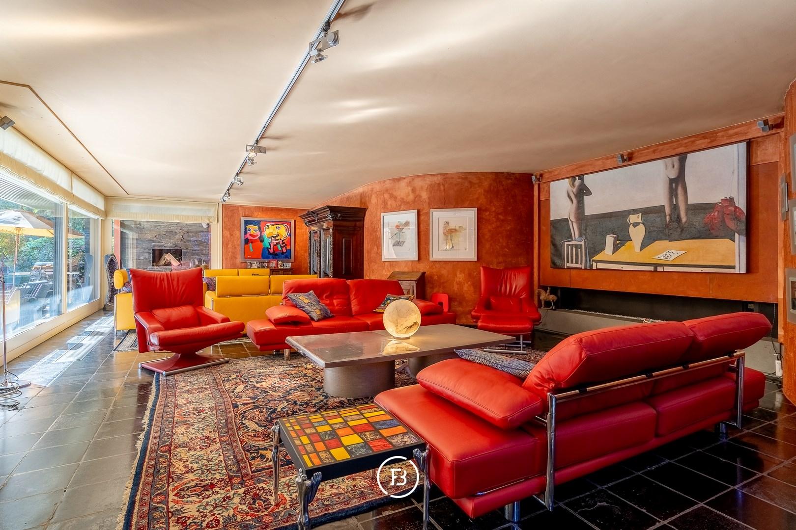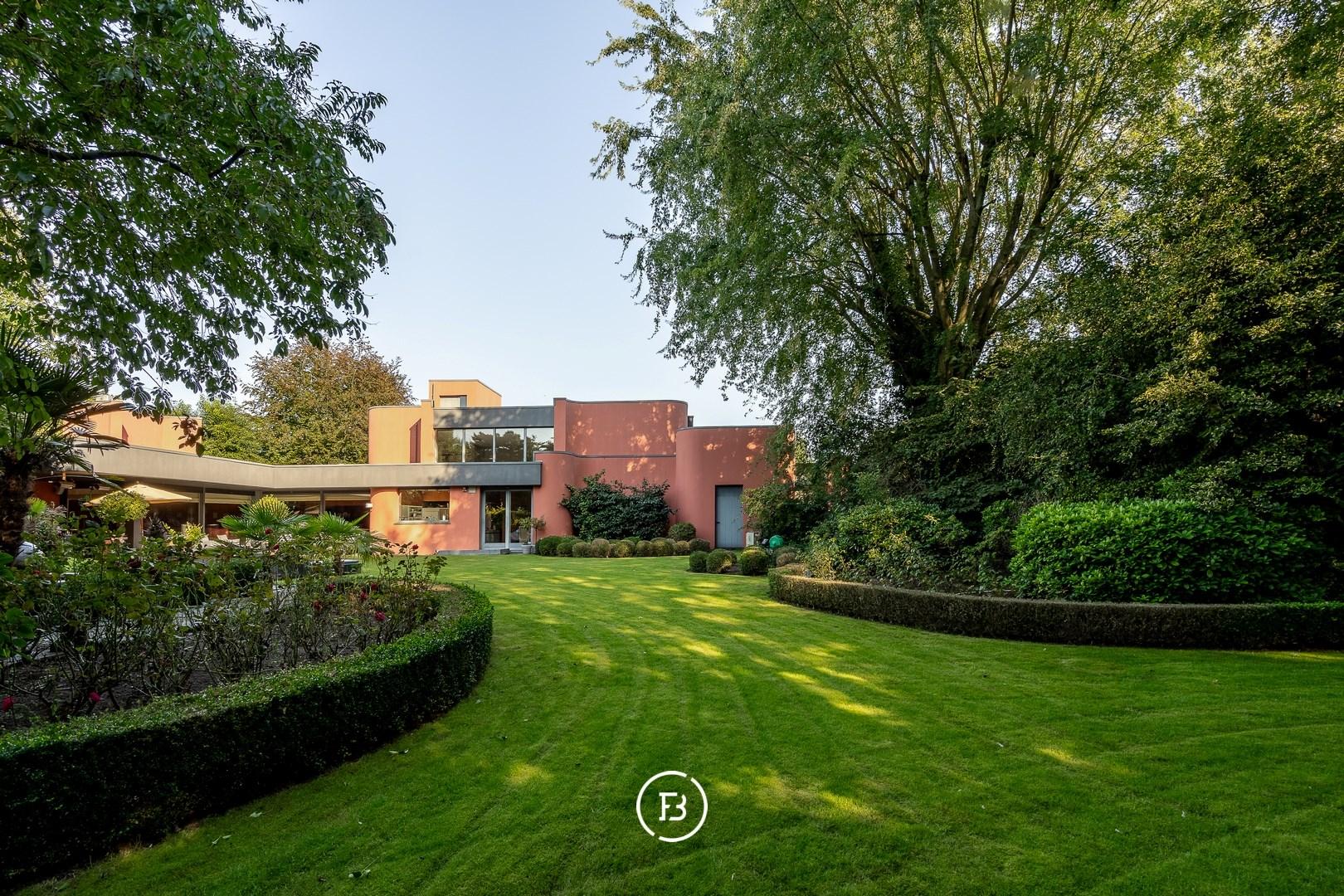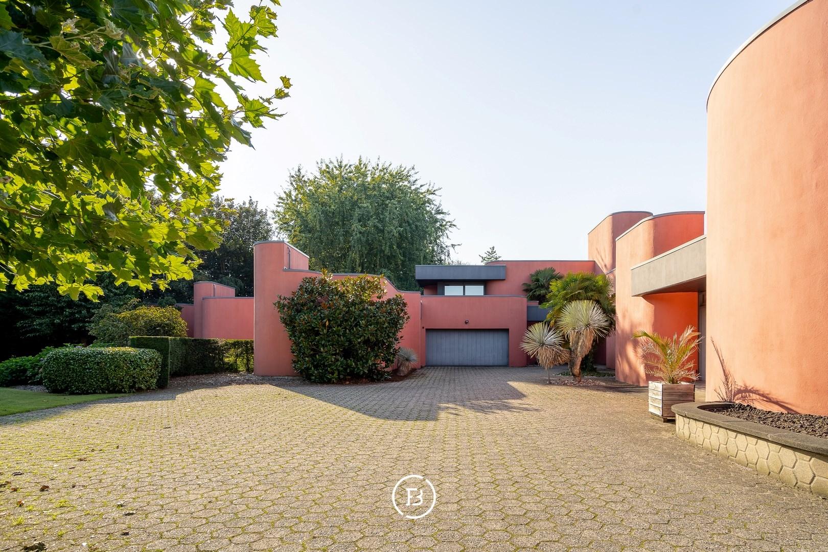 Deze unieke architectenvilla werd gebouwd in 1976 en ontworpen door architect Jan Vangheluwe. De totale oppervlakte van het perceel bedraagt ca. 6000 m² met een bewoonbare oppervlakte van maar liefst 1057 m². De villa wordt gekenmerkt door de afgeronde volumes en een prachtige groene tuin.