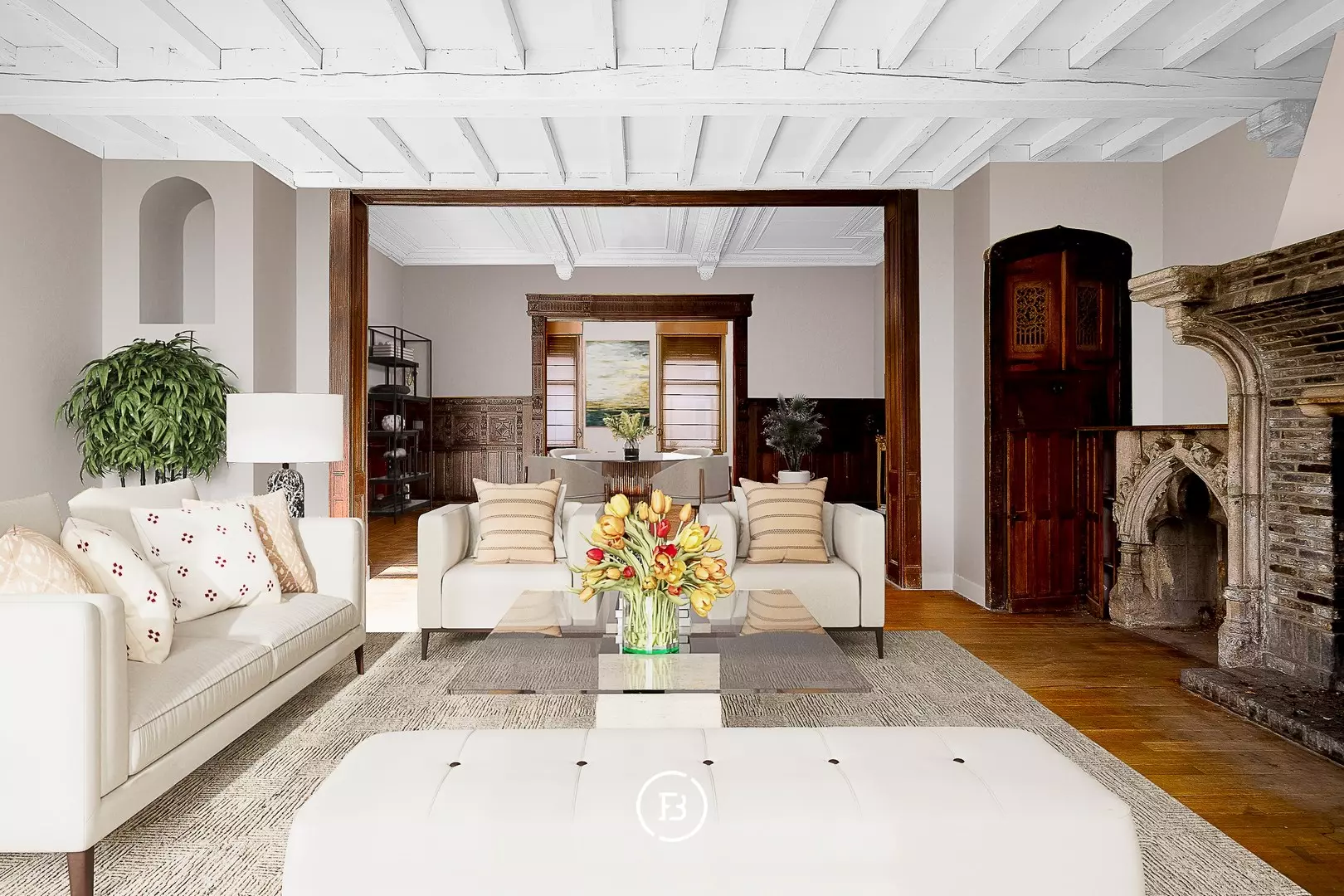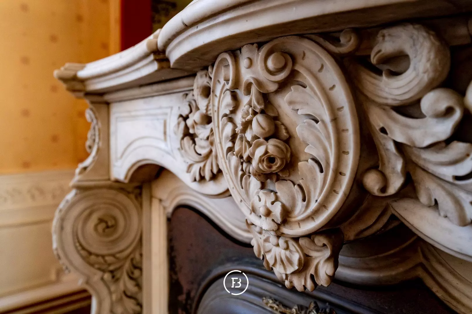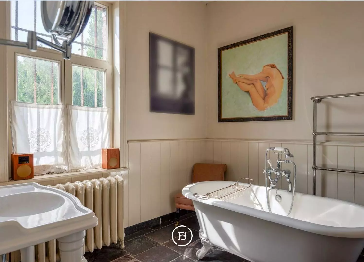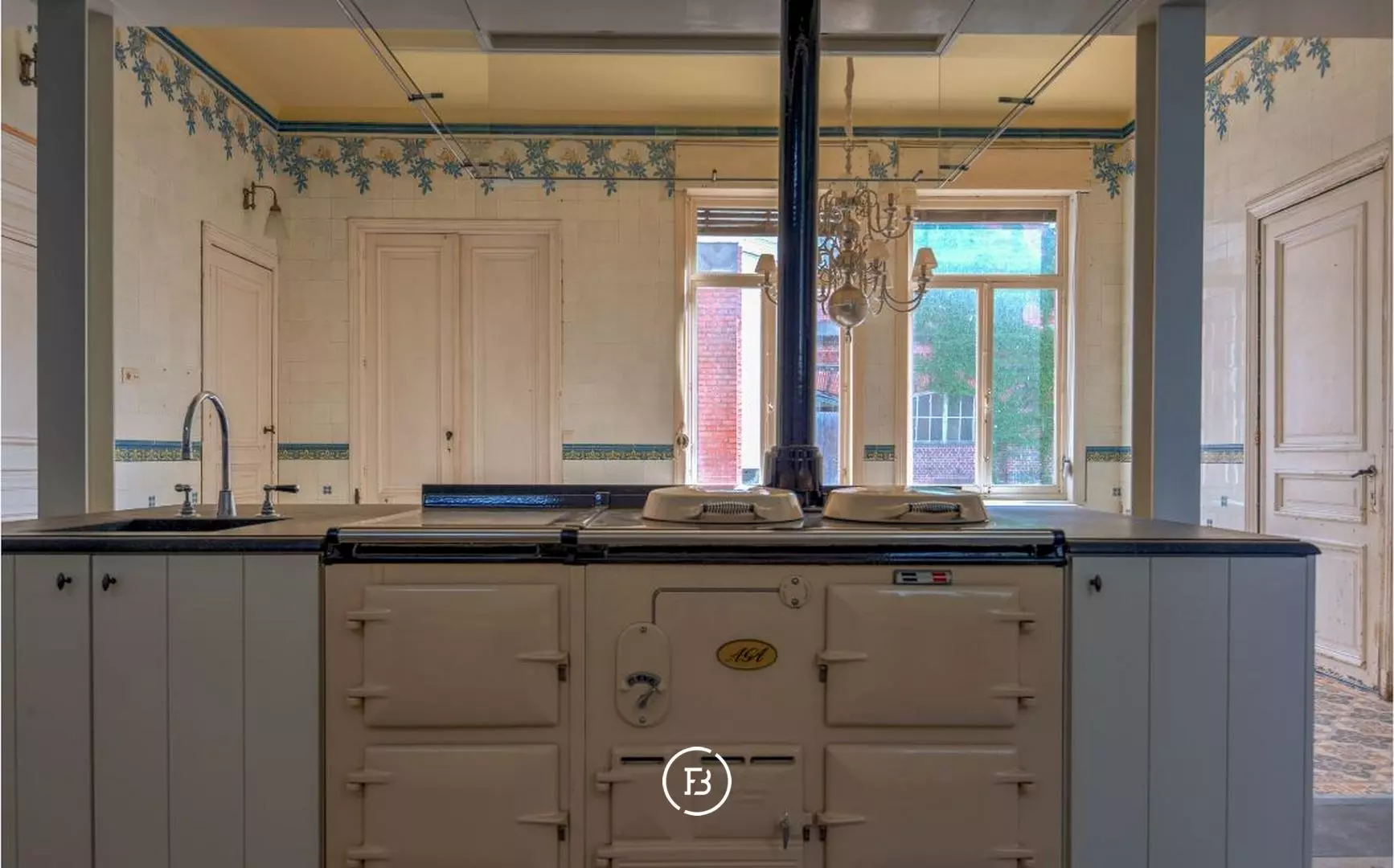 Unieke leefruimte met talloze decoratieve elementen, 3 open haarden en grote leefkeuken met AGA -fornuis. De decoratieve elementen bevinden zich in goede staat en zetten de authenticiteit kracht bij. Verder is er op de gelijkvloerse verdieping een royale inkomhal met toegang tot een ruime eetruimte. Dit laatste kan ook gebruikt worden als bureauruimte.