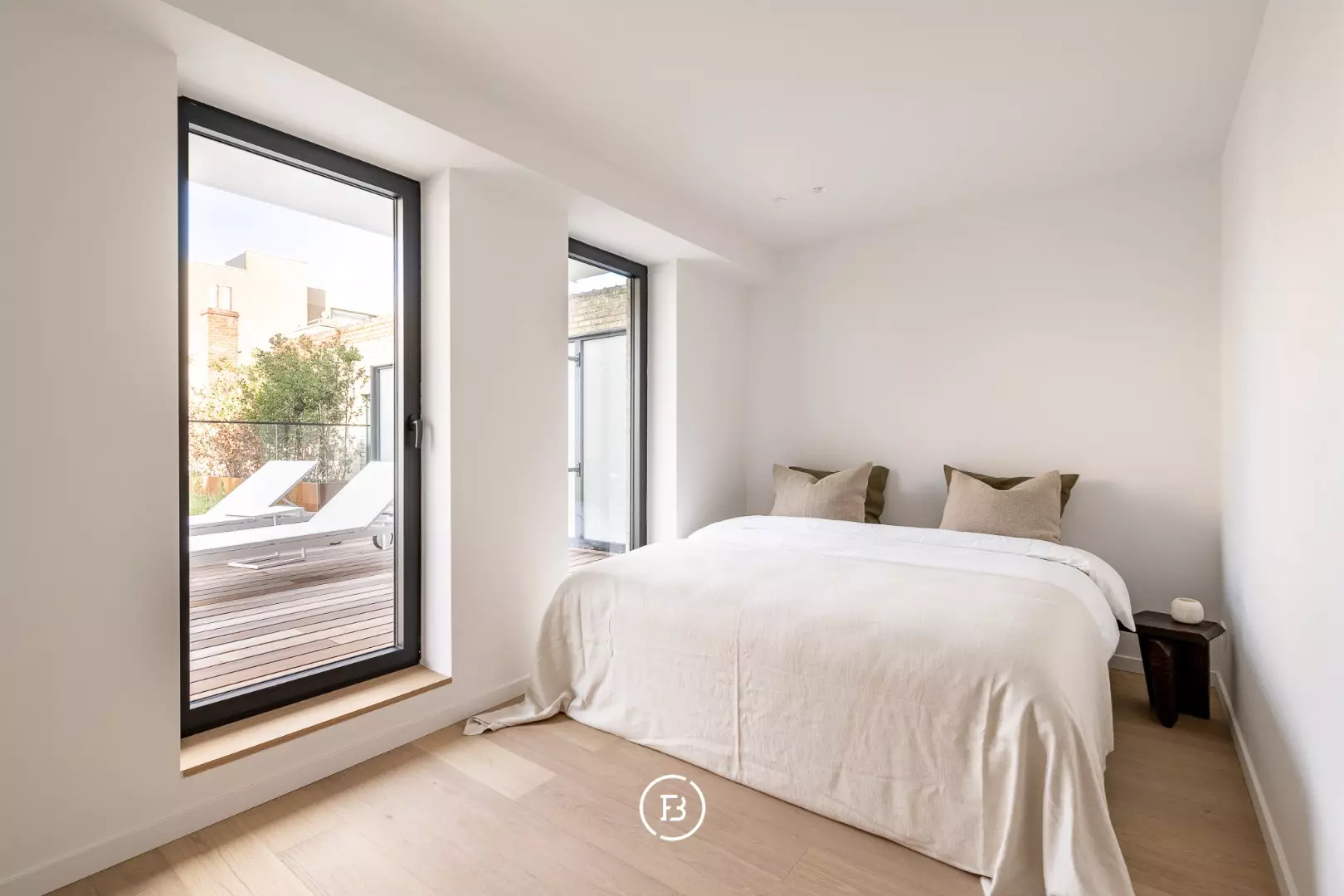 Een absolute troef zijn de twee ruime terrassen (voor- en achteraan) met een gezamenlijke oppervlakte van 54 m².