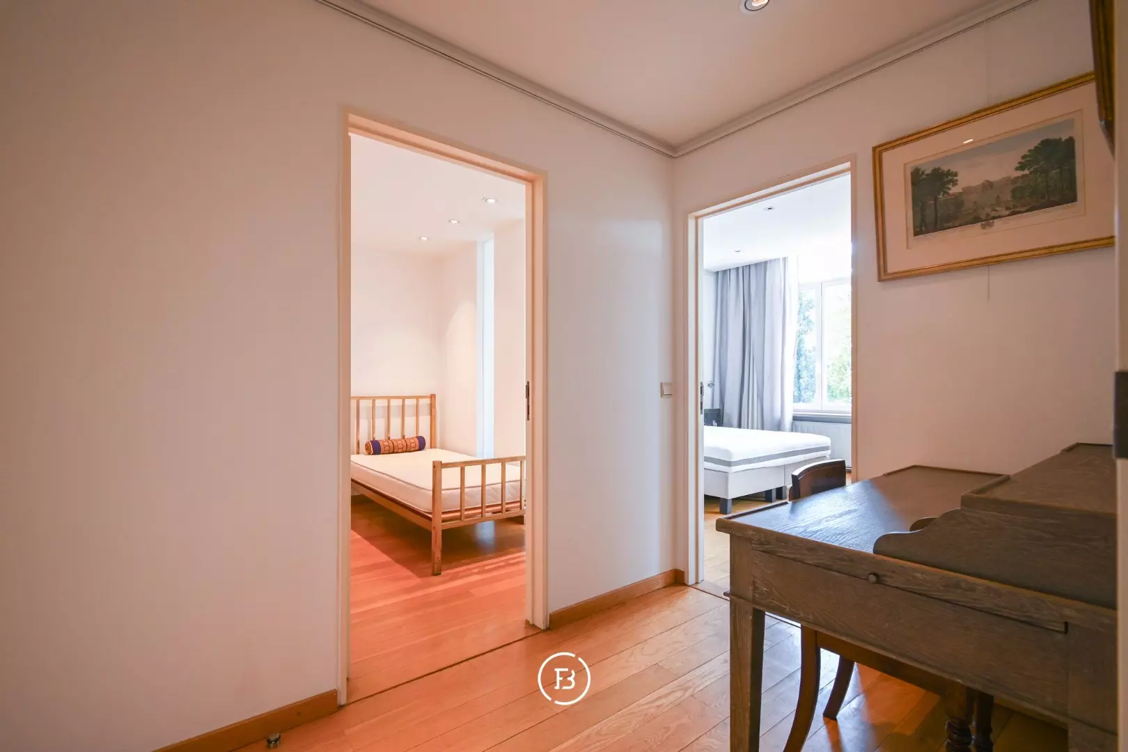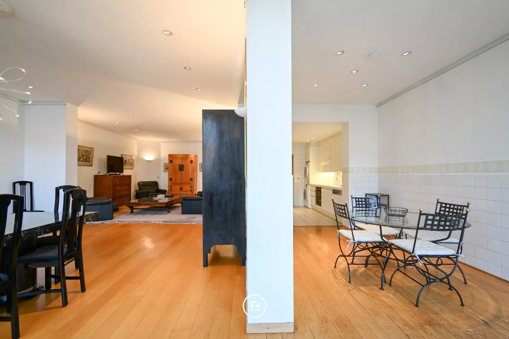 Het bestaat uit een ruime woonkamer met een salon en een eetkamer en suite, een volledig uitgeruste keuken met een kleinere eetruimte, 2 slaapkamers, een bureau/kleine slaapkamer/dressing, een badkamer, een douchekamer, 2 toiletten, een kelder en een garage.