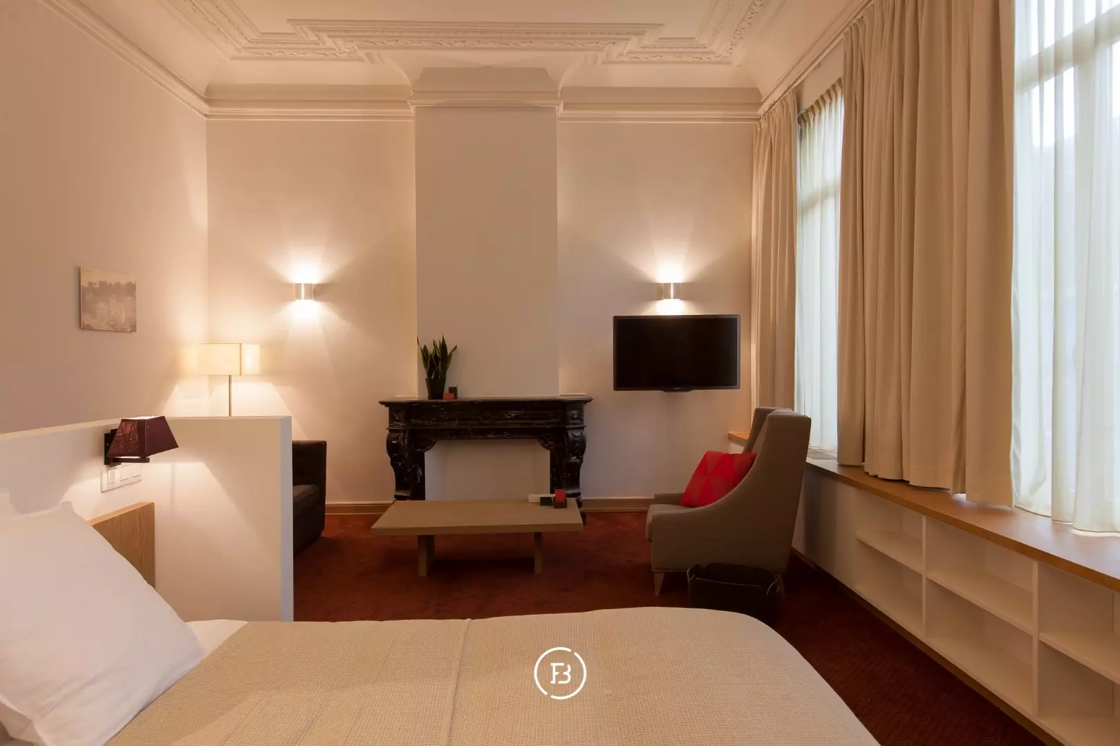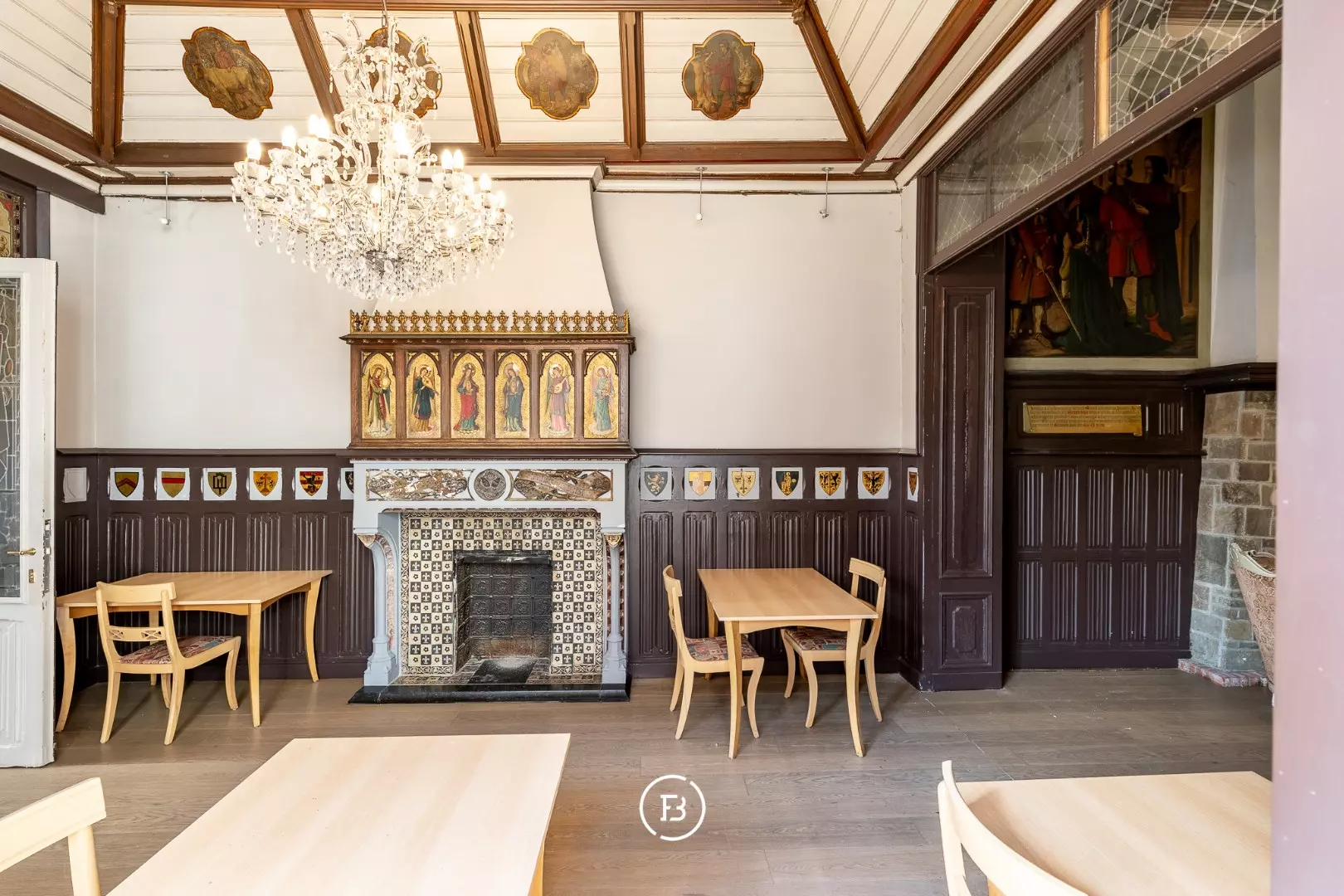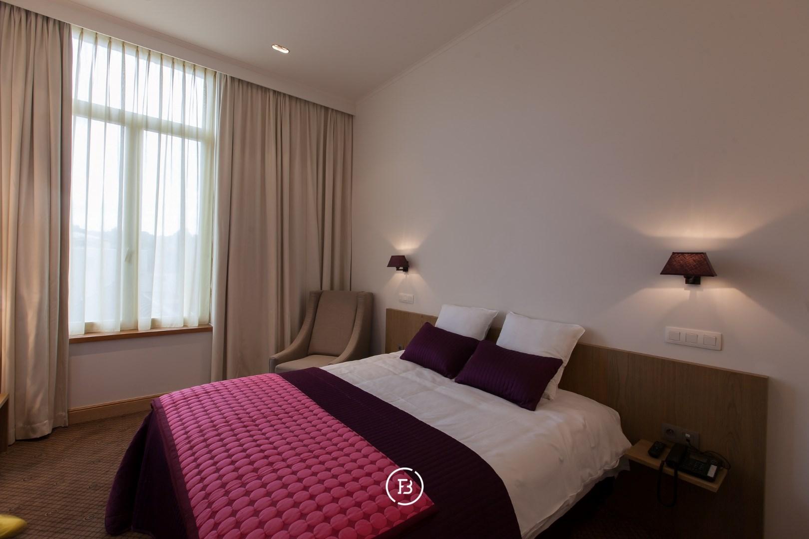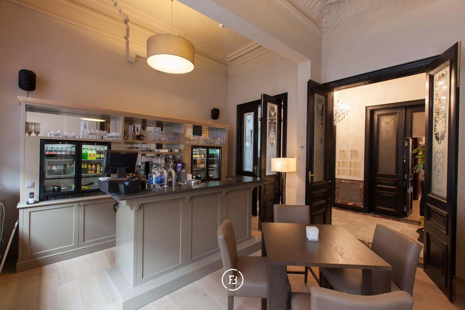 Het gelijkvloers verwelkomt gasten met een statige inkomhal, een receptie, een sfeervolle bar en meerdere salons (eventueel mogelijkheid voor restaurant).