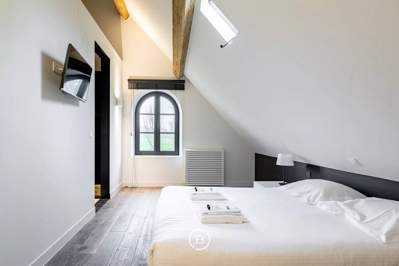DammeGelegen op slechts 50 meter van het pittoreske centrum van Damme en langs de idyllische Damse Vaart, biedt deze prachtige hoeve een uitzonderlijke woonervaring. Omringd door ambachtelijke bakkers, slagers, sfeervolle koffiehuizen en gezellige restaurants, combineert deze eigendom rustieke charme met moderne comfort.
