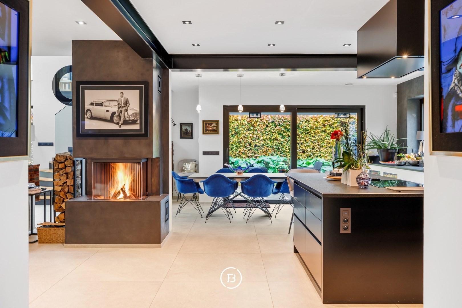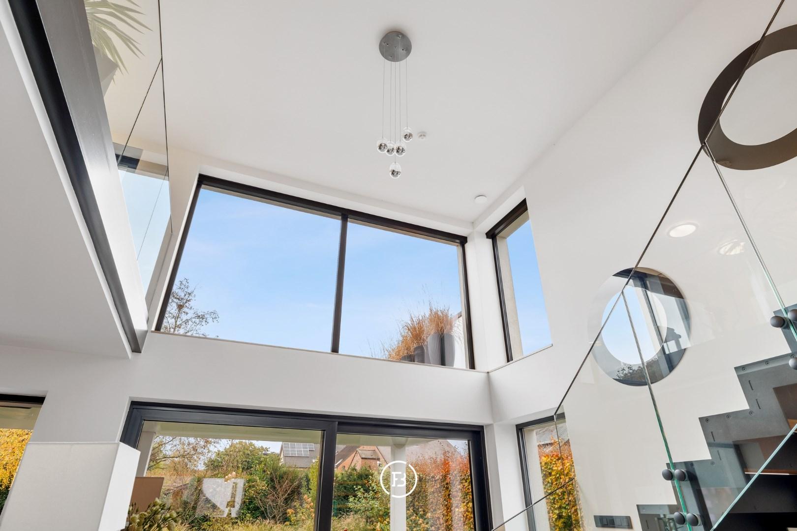 0: Inkomhal met gastentoilet, ruime woon- en eetkamer voorzien van open haard en onmiddellijke toegang tot het overdekte terras, volledig uitgeruste open keuken. Drie slaapkamers (16, 9 en 9 m²) met badkamer voorzien van wastafel, toilet en douche, en een mastersuite (18 m²) voorzien van dressing en badkamer met dubbele wastafel, douche en ligbad.