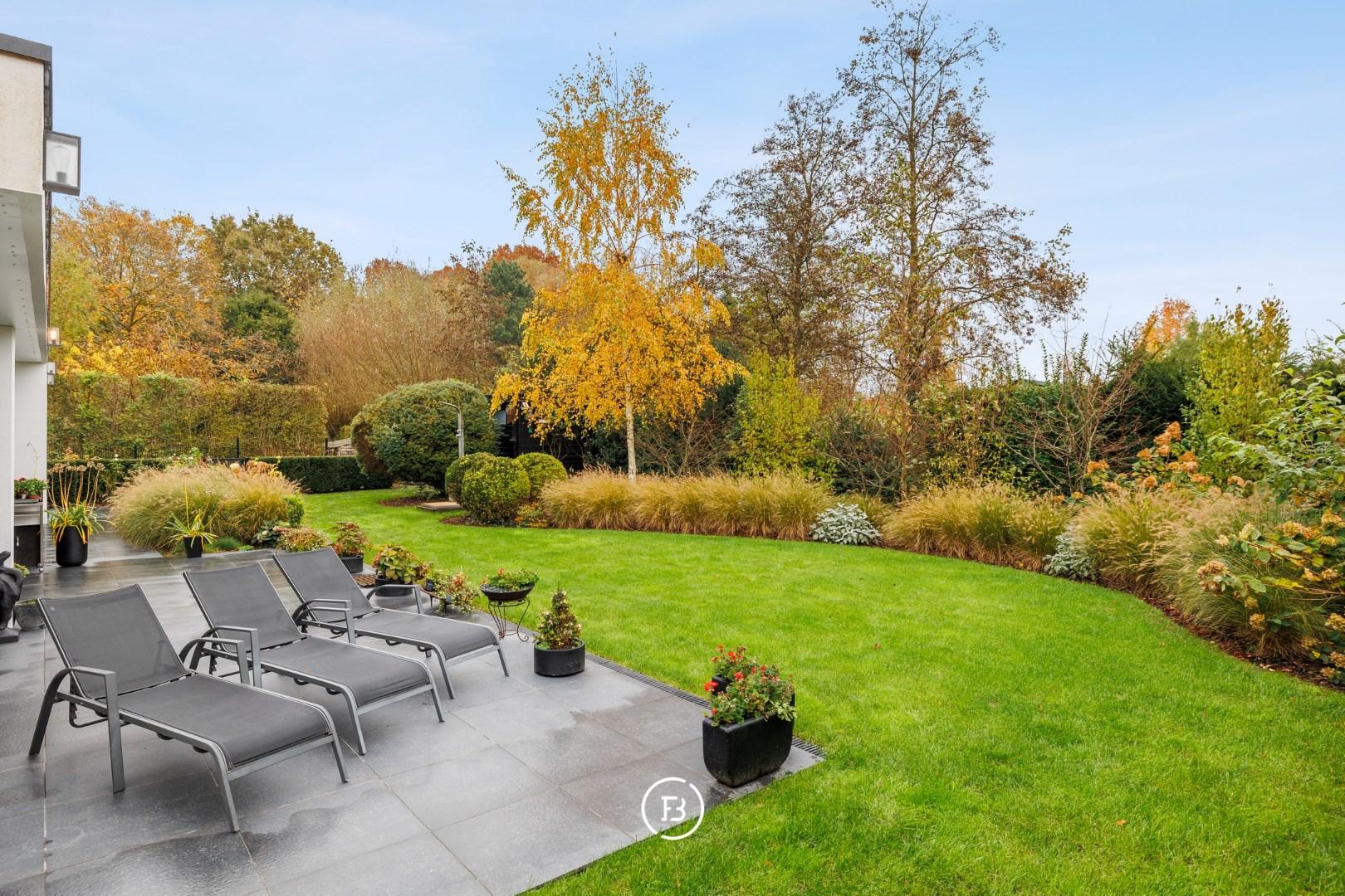 De buitenomgeving (zuidoost georiënteerd) is onderhoudsvriendelijk en wordt gekenmerkt door een overdekt terras, buitendouche, een tuinhuis en een ruime oprit.