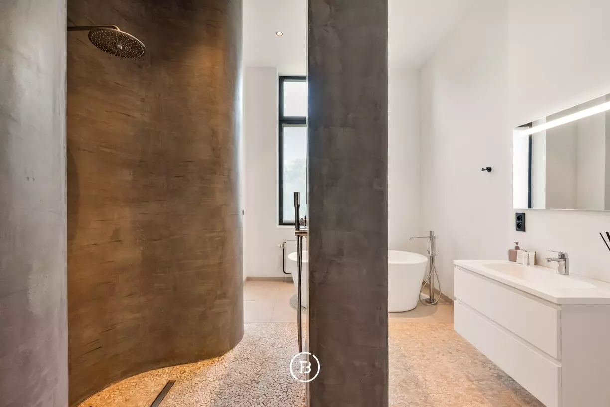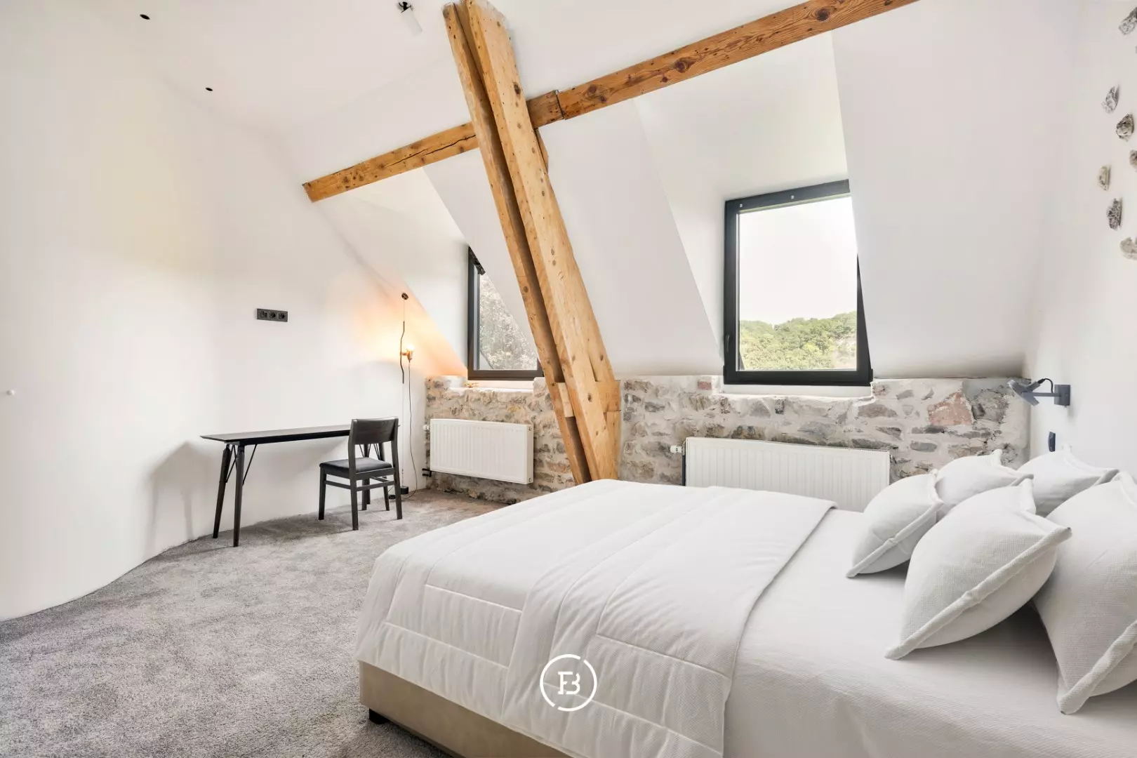 De bovenste verdieping telt vier kamers, waaronder twee charmante torenkamers met een uniek uitzicht. Elke kamer beschikt over een eigen badkamer, wat bijdraagt aan de luxe en exclusiviteit van het geheel.