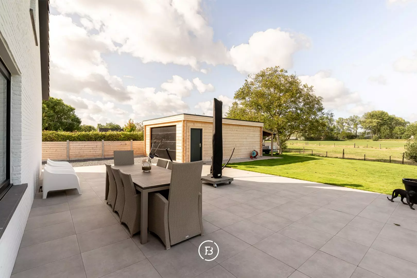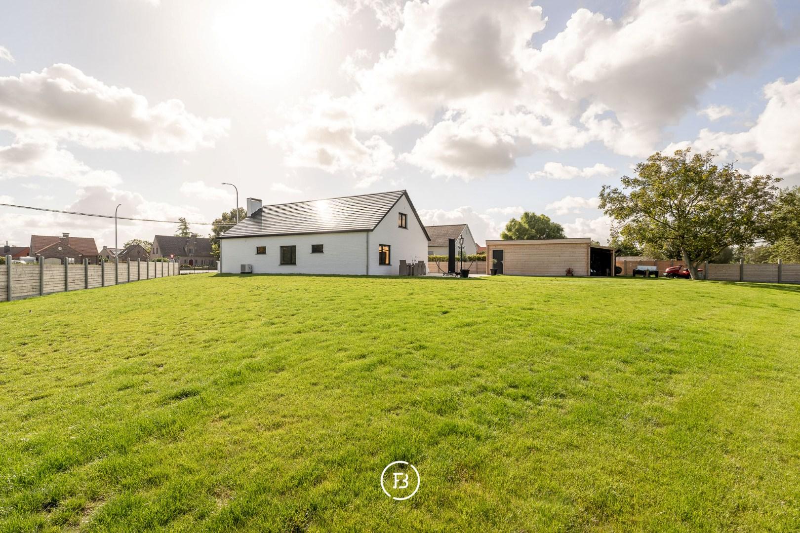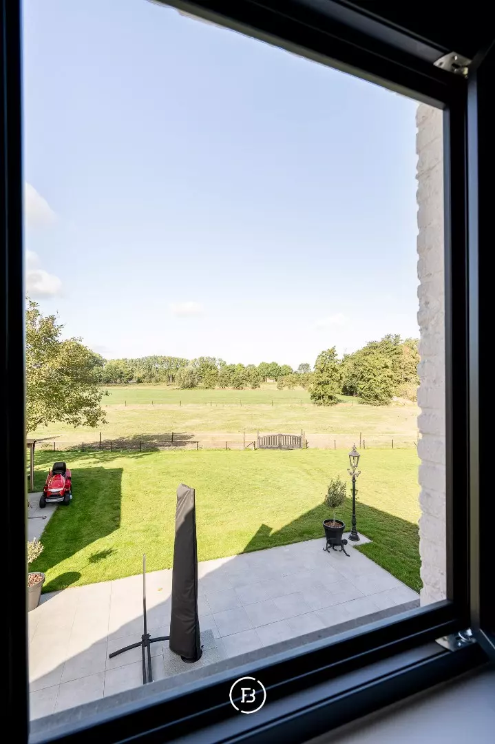 De aangelegde tuin en paardenweide vormen een idyllisch kader voor ontspanning, hobby of buitenactiviteiten. Een losstaande garage van 42 m² in houtskeletbouw biedt extra ruimte voor voertuigen of creatieve projecten.