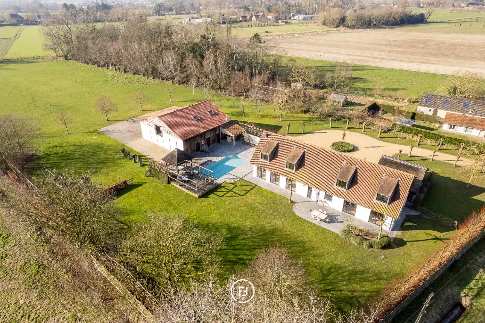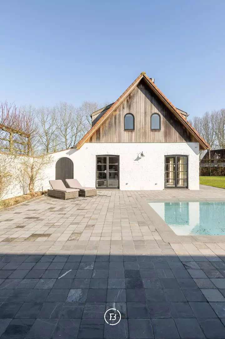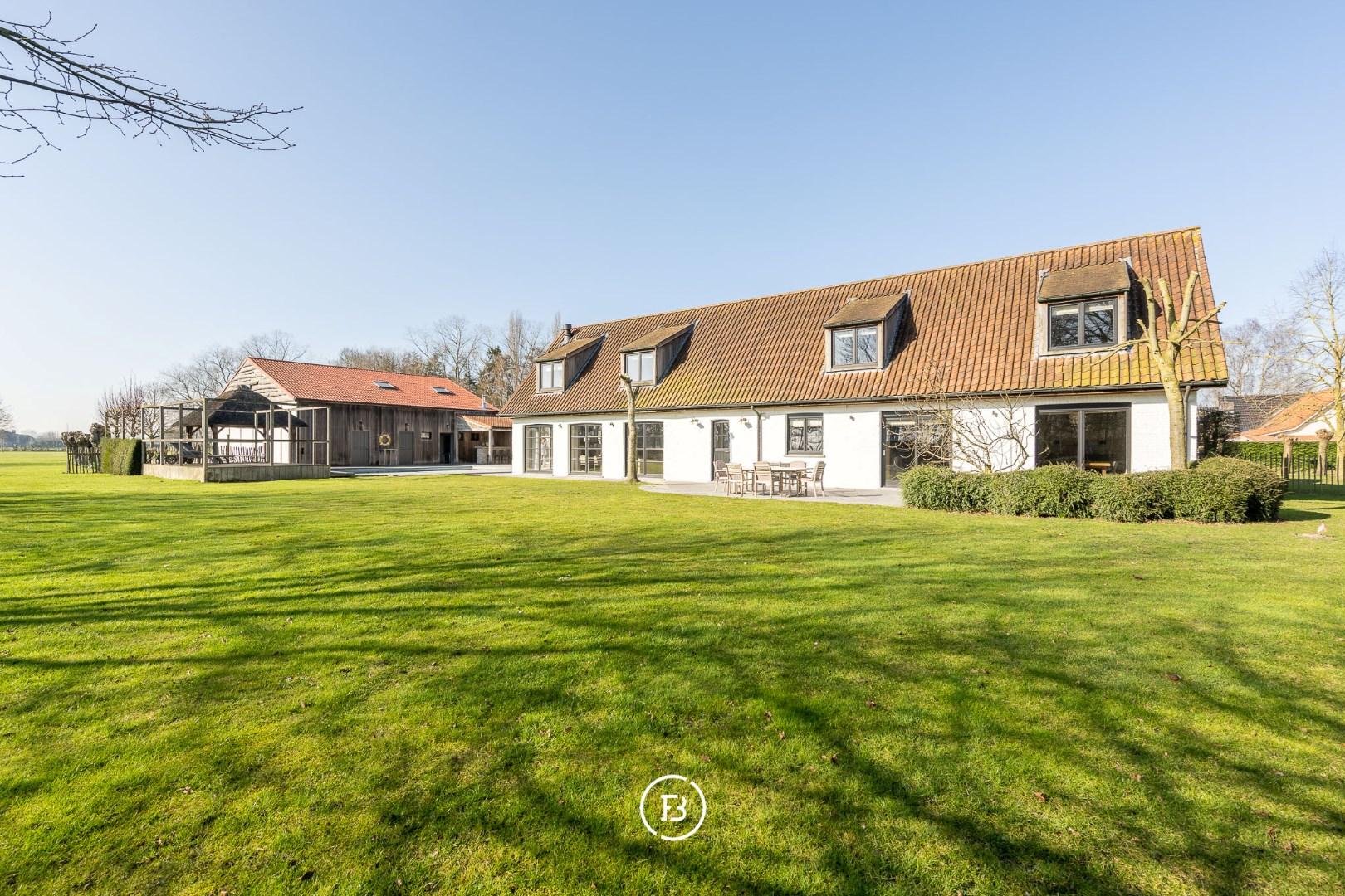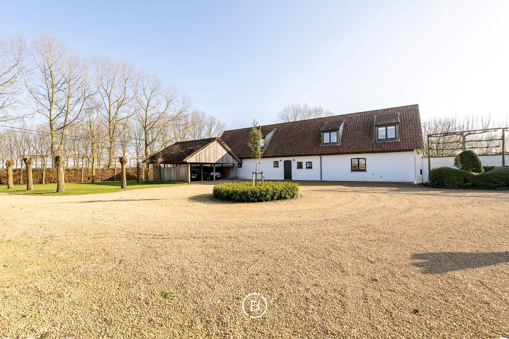 Op wandelafstand van de mooiste plekjes langs het Leopoldkanaal en toch een goeie ontsluiting naar de N49 (3 minuutjes rijden). Knokke bereik je na een goeie 10 minuten. Het geheel ligt op een oppervlakte van anderhalve hectare en maakt het zo ideaal voor mensen die er paarden willen houden. Verder in het bijgebouw vind je nog een polyvalente zaal, meerdere bergruimtes en een grote ruimte waar een zestal auto's in passen. Op de oprit staat nog een carport die 2 auto's kan stallen.