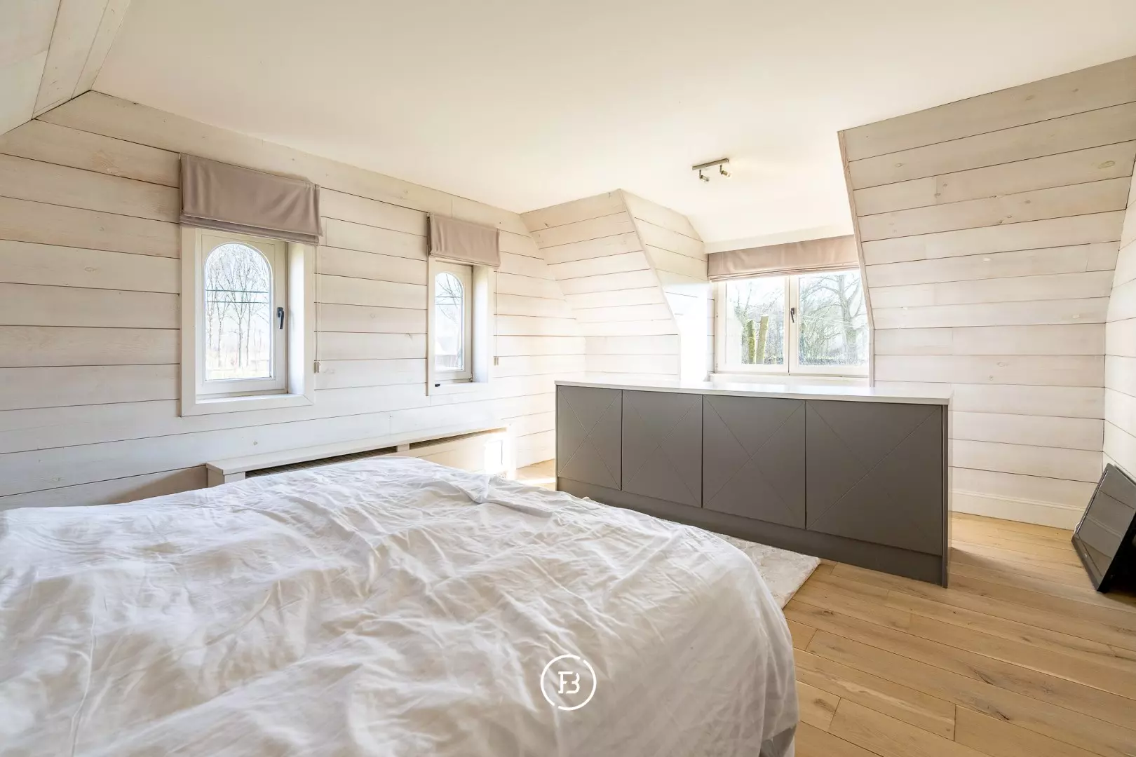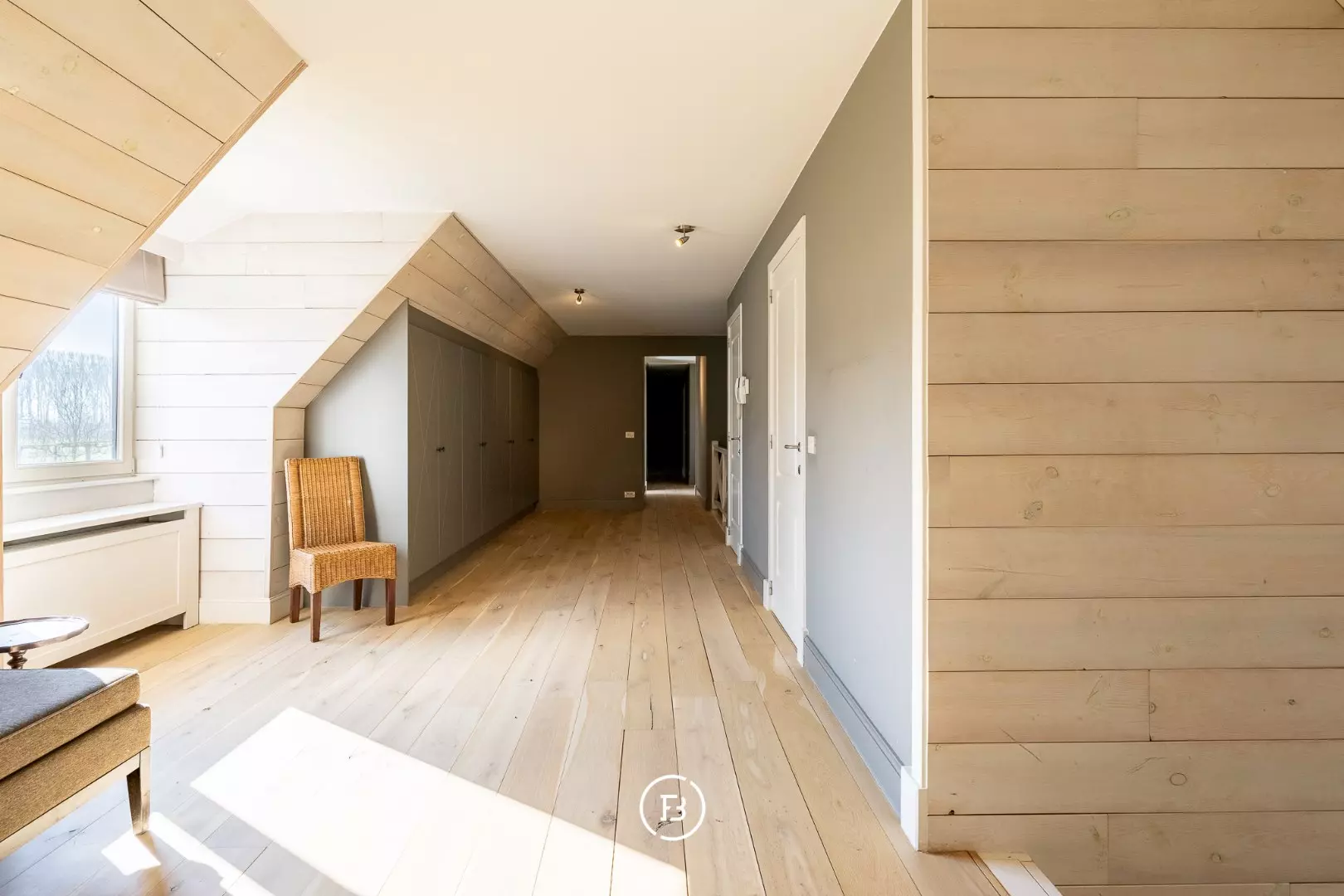 Daar kan je vanuit een royale gang met dressing en salon naar de master bedroom, 3 extra slaapkamers, een badkamer met ligbad en douche en een apart toilet.