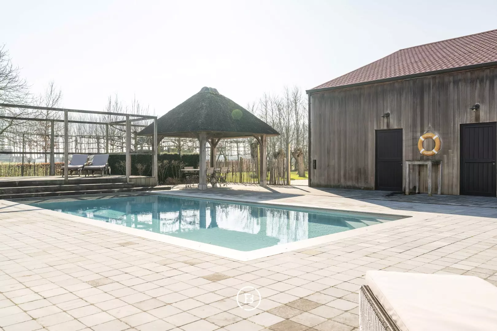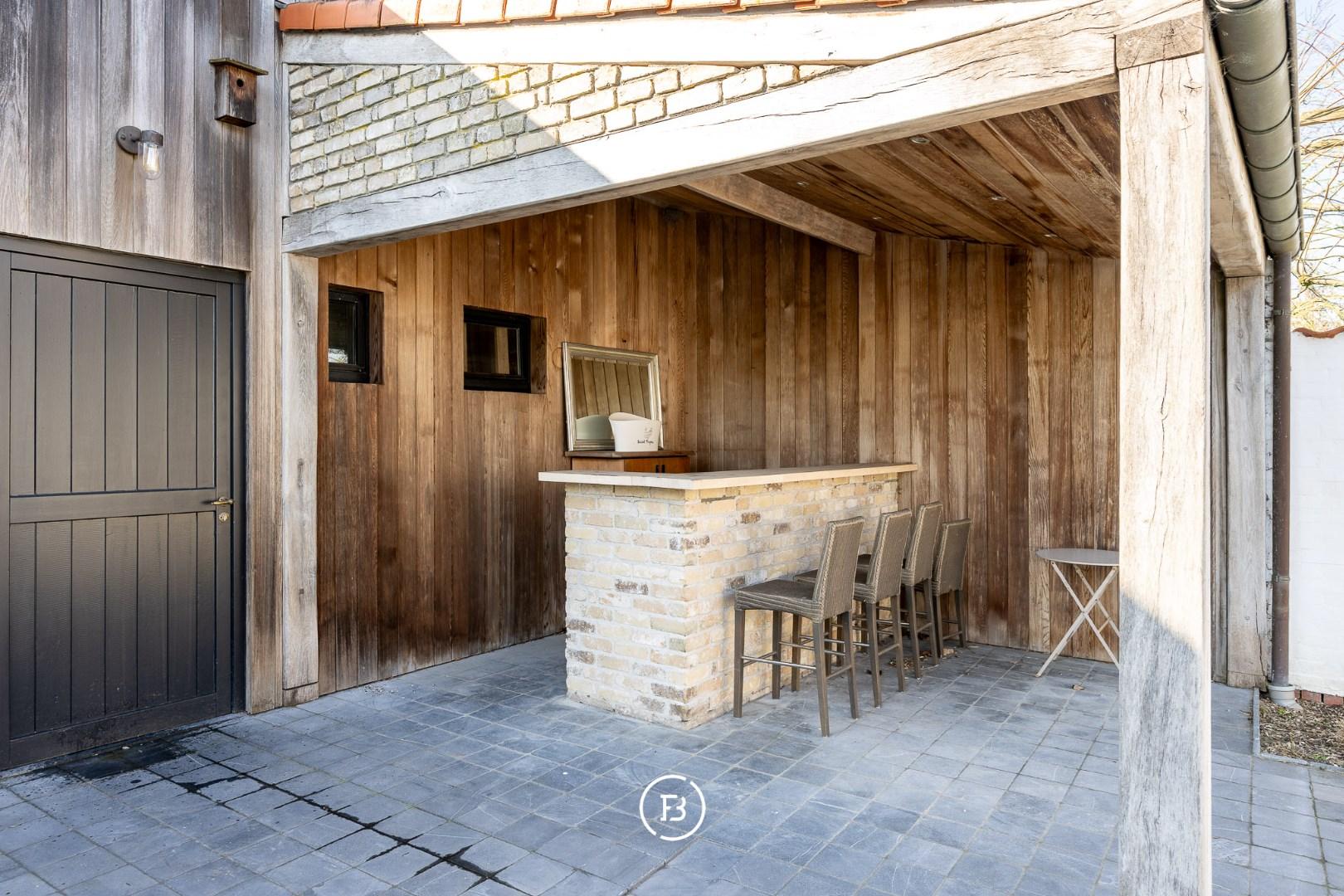 Meerdere terrassen, een heuse "St Tropez" bar, verwarmd zwembad en een poolhouse met grote inloopdouche en 2 toiletten maken van de tuin een plaats om heerlijk te onspannen met vrienden.
