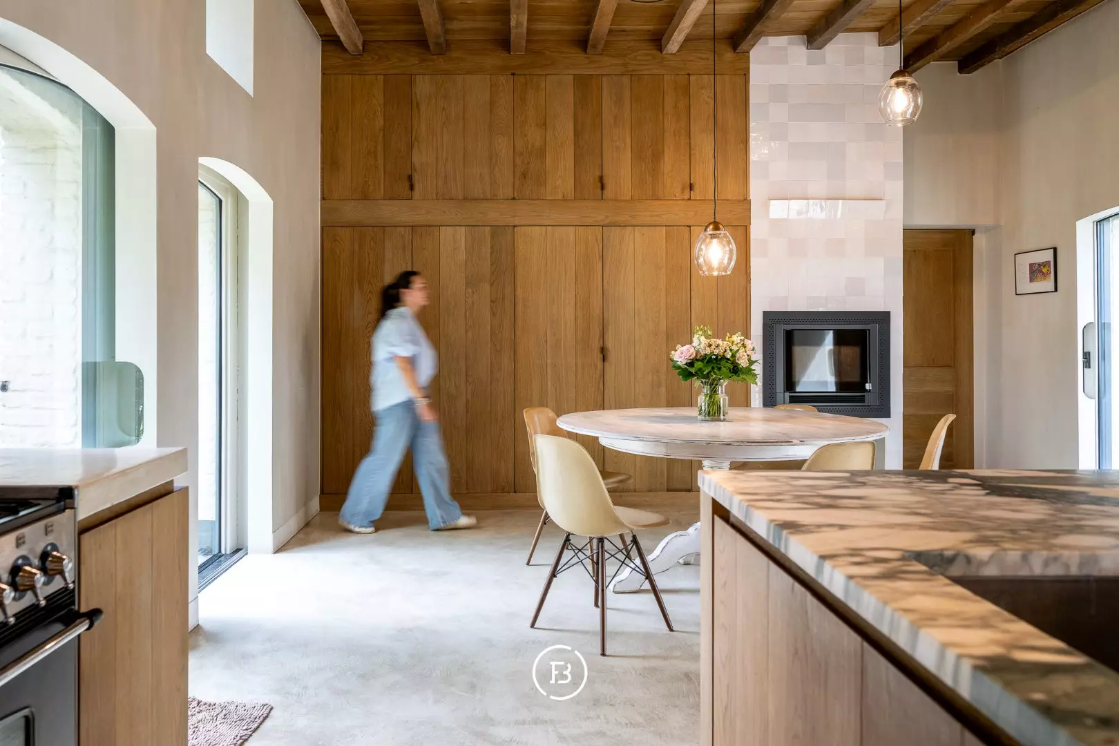 De hoofdwoning onderging in 1999 een grondige restauratie en kreeg in een 2de fase anno 2016 een facelift van het interieur (architect S. Boens). De woning geniet een hoogstaand en luxueuze afwerking en is voorzien van alle hedendaags comfort. De schuur ligt in het verlengde van de woning en omvat een enorm volume. De schuur doet momenteel dienst als opslag / berging, werd op heden niet verder afgewerkt.