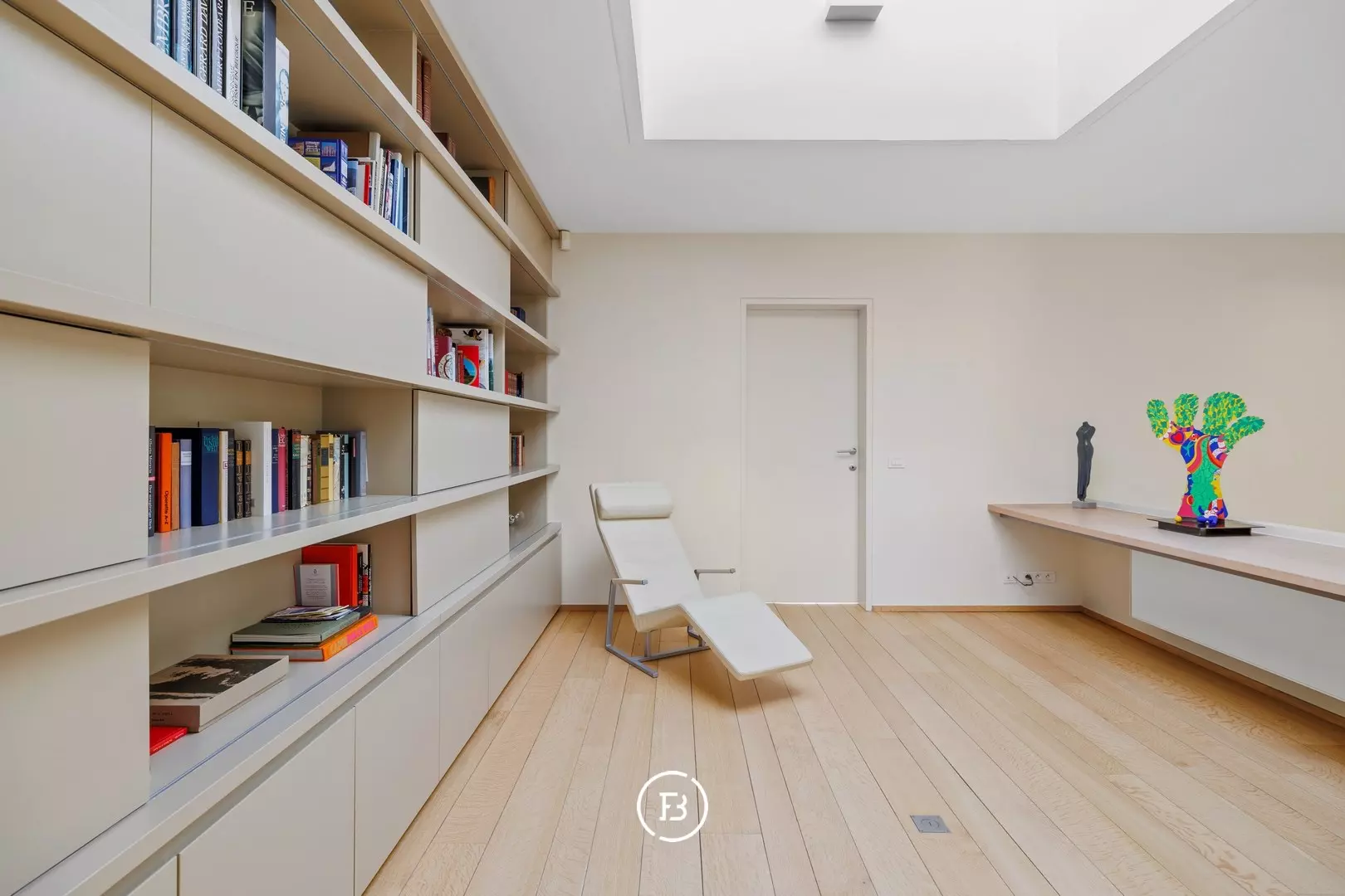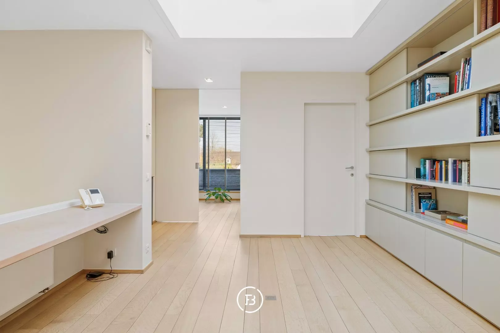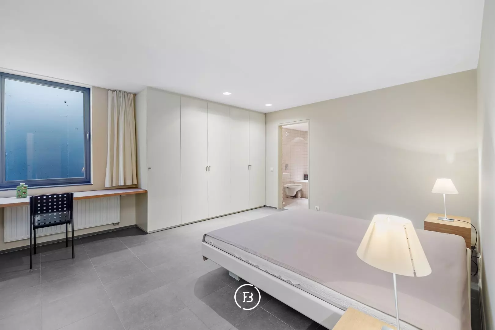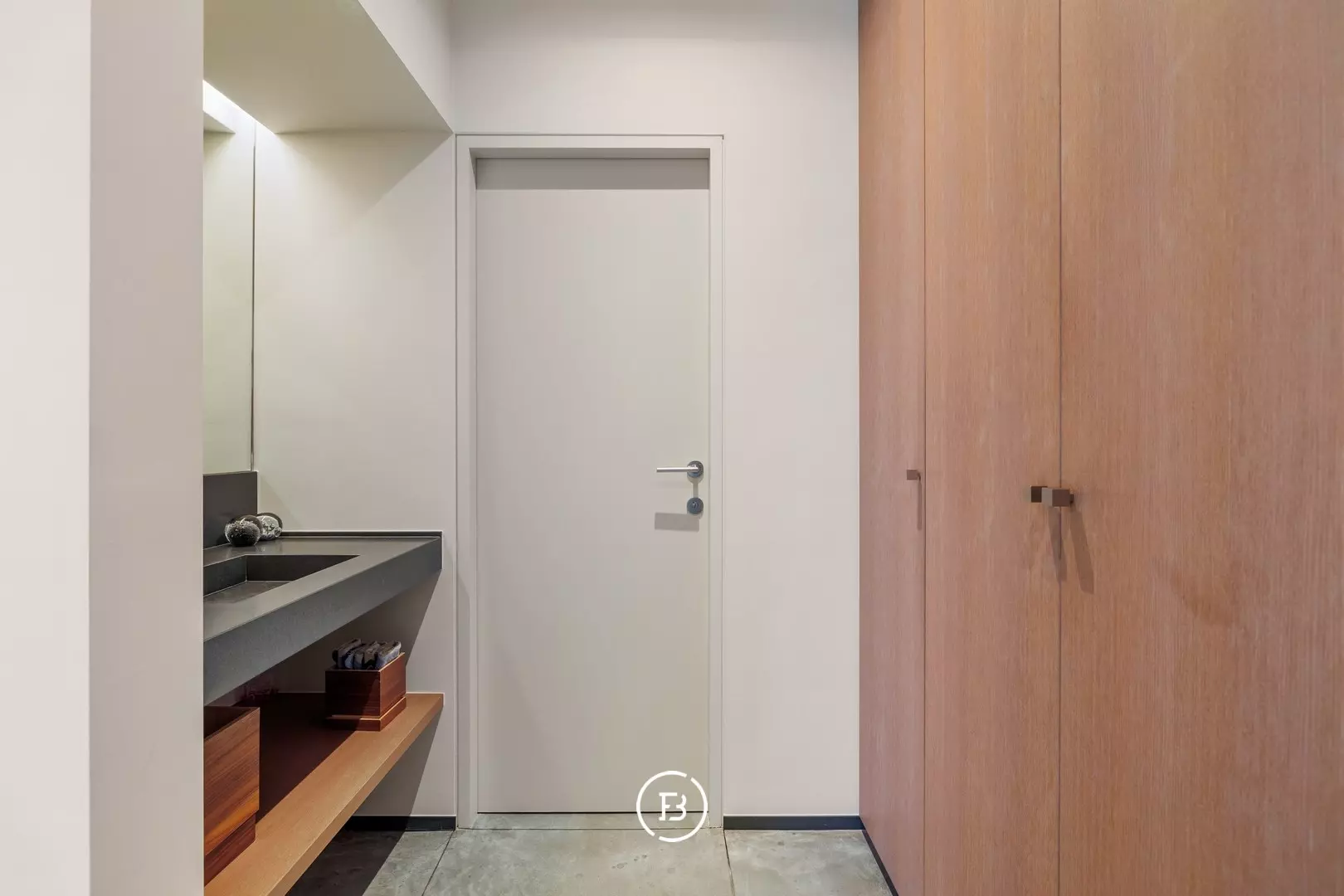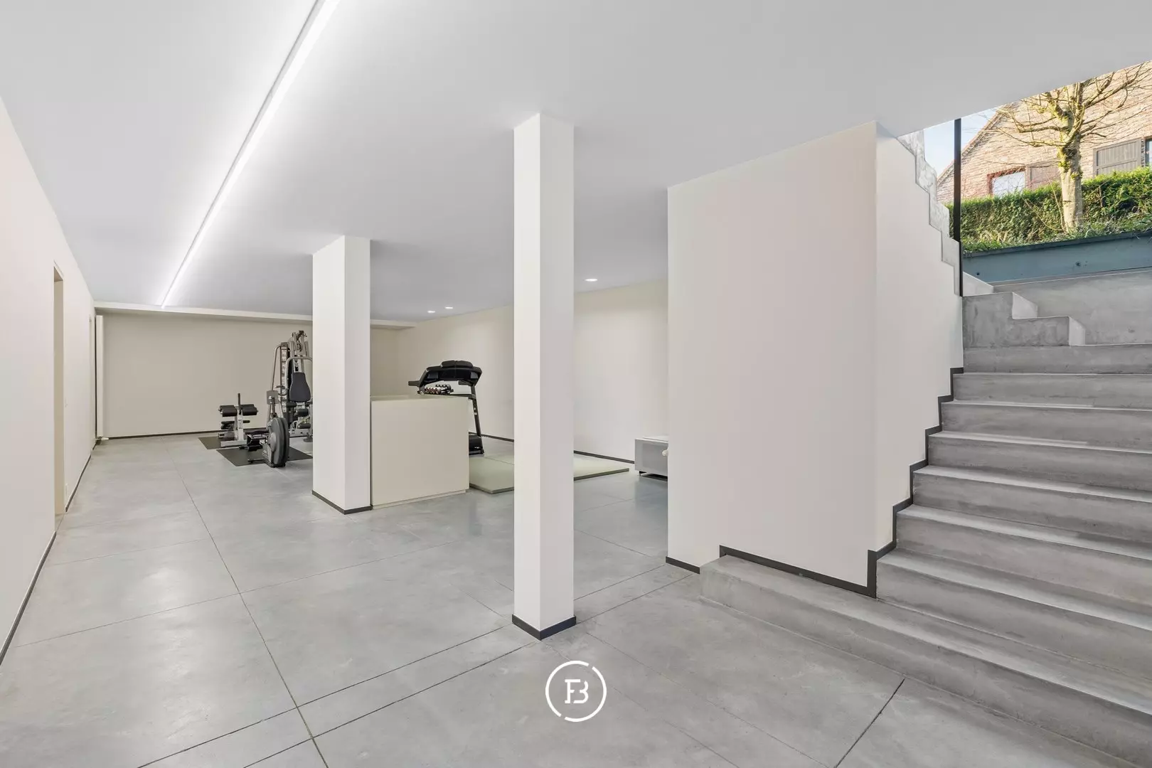 -1: Hier vinden we een zeer ruime polyvalente zaal terug die perfect dienst kan doen als aparte leefruimte voor kinderen of als vrije beroep ruimte. Deze ruimte biedt toegang tot 2 ruime slaapkamers, elke met hun en-suite badkamer en inmaakkasten. Verder vinden we nog een berging en wijnkelder terug en een ruimte met alle technieken.
