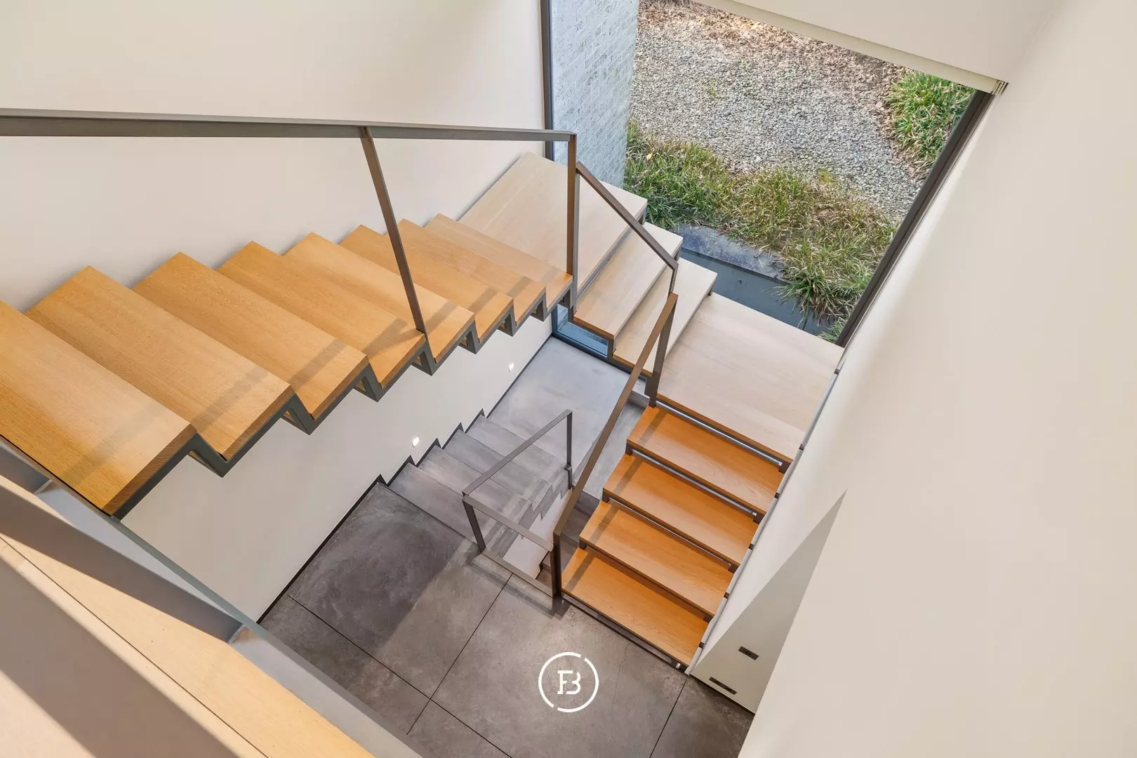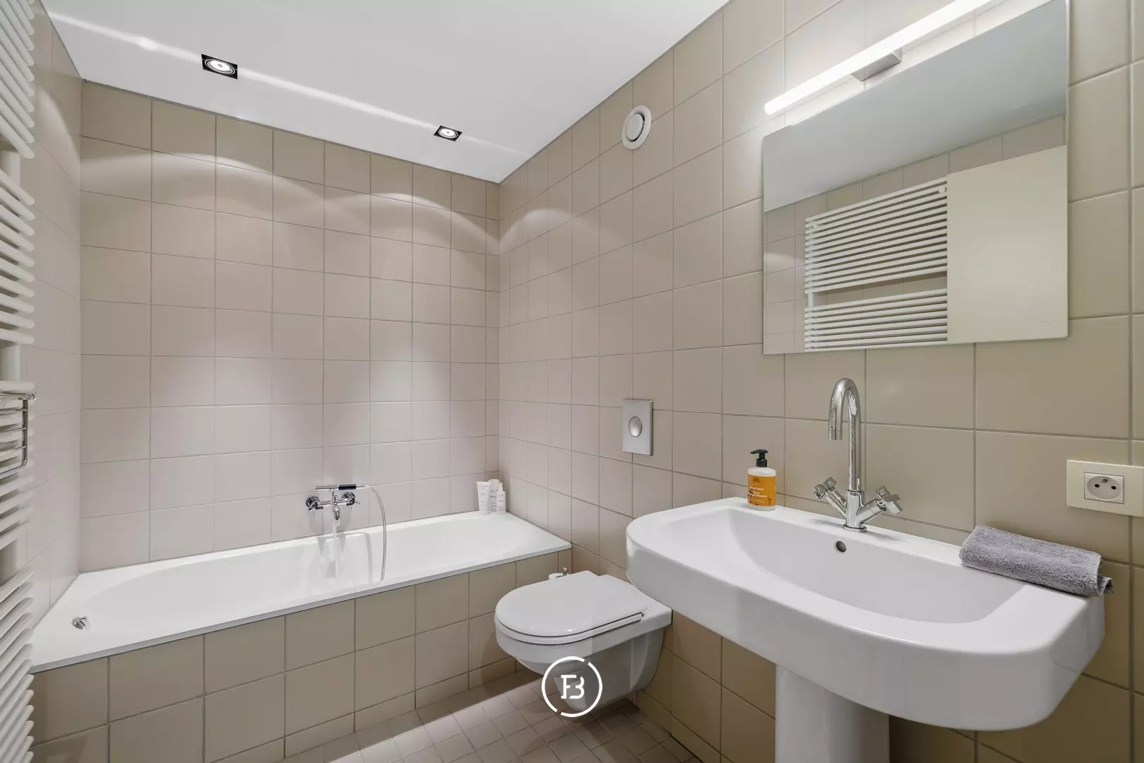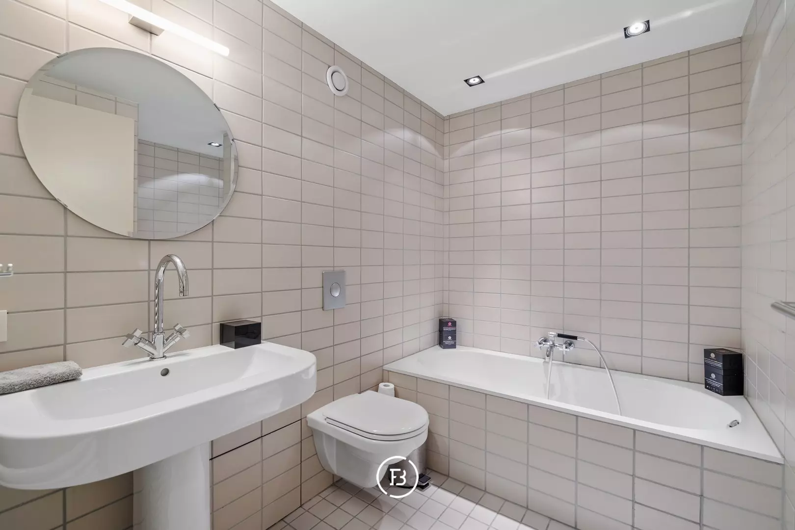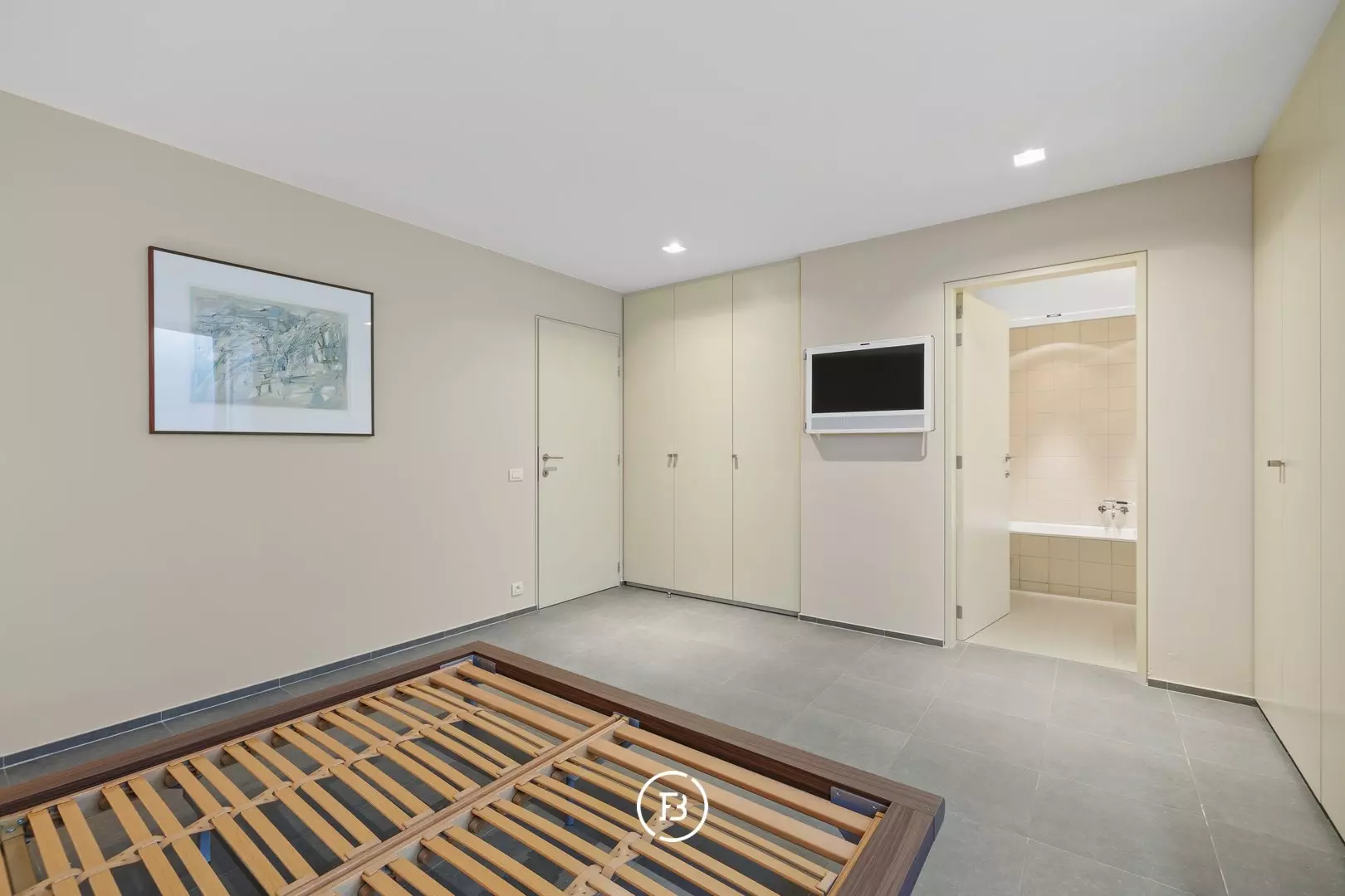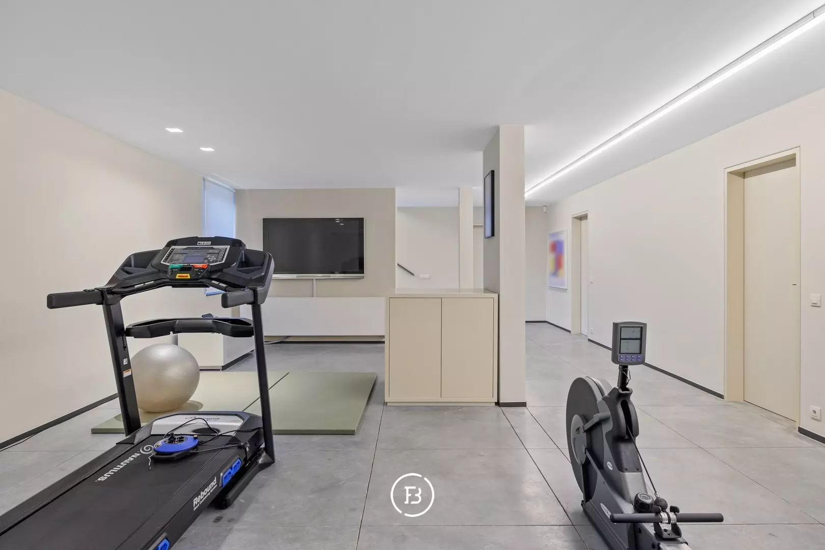 -1: Hier vinden we een zeer ruime polyvalente zaal terug die perfect dienst kan doen als aparte leefruimte voor kinderen of als vrije beroep ruimte. Deze ruimte biedt toegang tot 2 ruime slaapkamers, elke met hun en-suite badkamer en inmaakkasten. Verder vinden we nog een berging en wijnkelder terug en een ruimte met alle technieken.