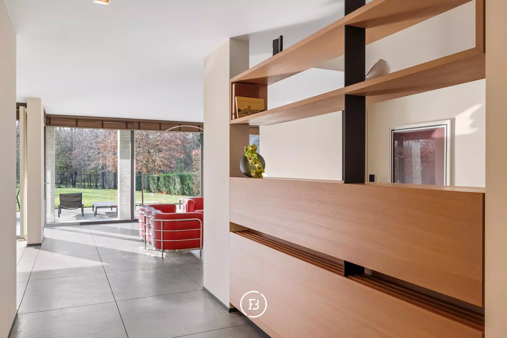 Gelegen in het prestigieuze domein van Bouchout vinden we deze villa terug ontworpen door gerenommeerd architect Marc Corbiau. Deze villa is gelegen op een perceel van 14,3 are kan genieten van een zuidwestelijke ligging. De villa wordt gekenmerkt door een kwalitatieve en duurzame afwerking, zonnepanelen, airco, gunstig EPC label en 2 laadpunten voor elektrische wagens.