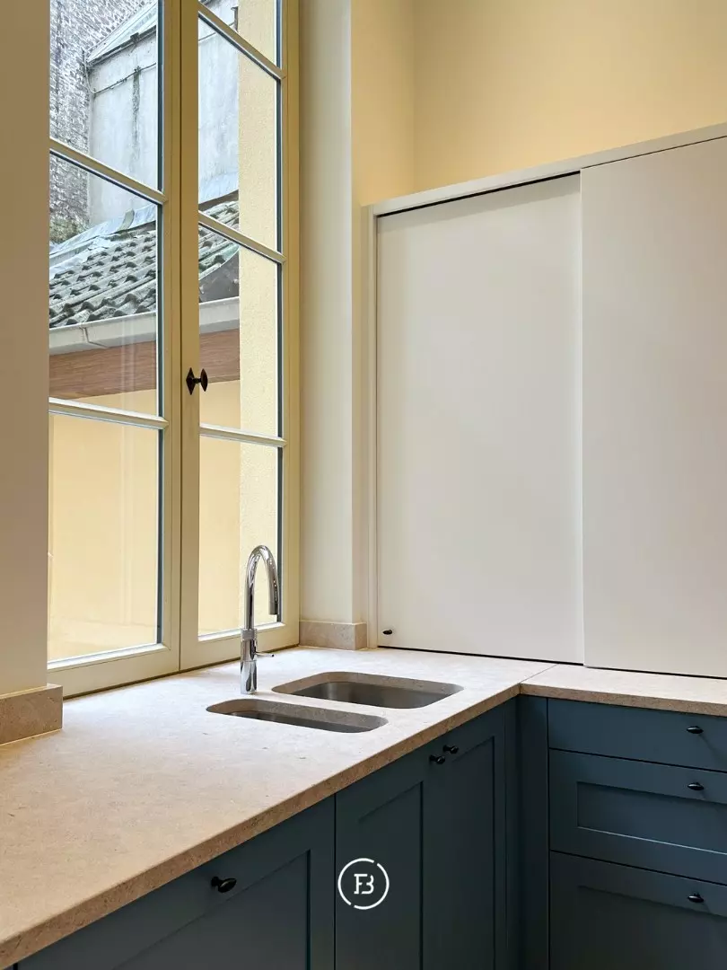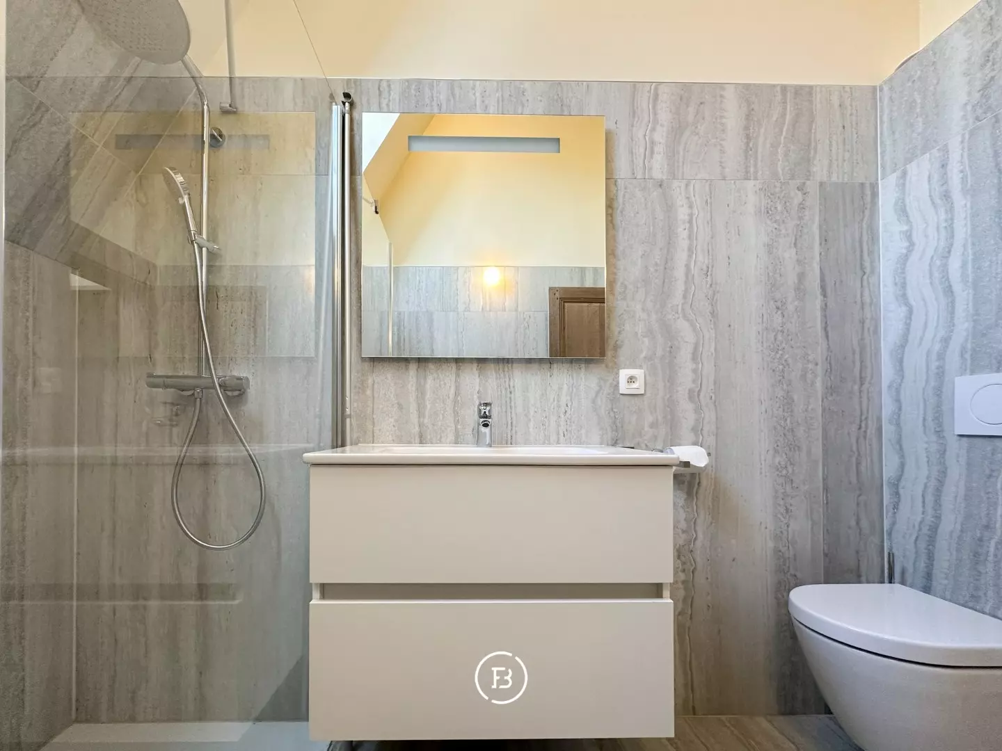 Deze woning werd volledig en doordacht gerenoveerd met oog voor kwaliteit, energiezuinigheid én esthetiek. Authentieke elementen zoals originele balken en details werden liefdevol behouden, terwijl moderne technieken en hoogwaardige afwerkingen het wooncomfort naar een hoger niveau tillen.