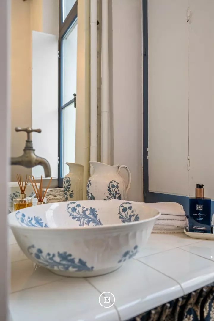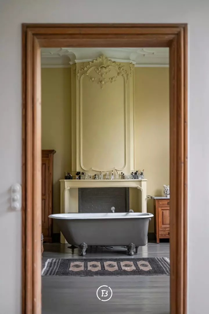 Op de eerste verdieping heb je 2 ruime slaapkamers, waarvan de master bedroom een ensuite dressing heeft en een erg ruime badkamer met losstaand bad en zicht op de parktuin en een ruim bureau/kamer. Aan de diensttrap is nog een kleine badkamer met toilet.