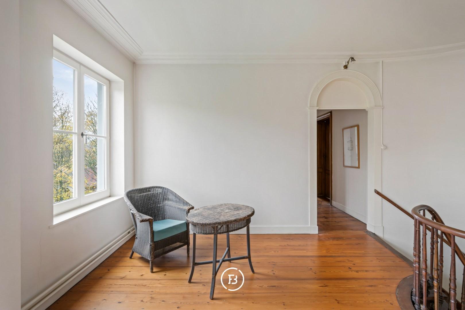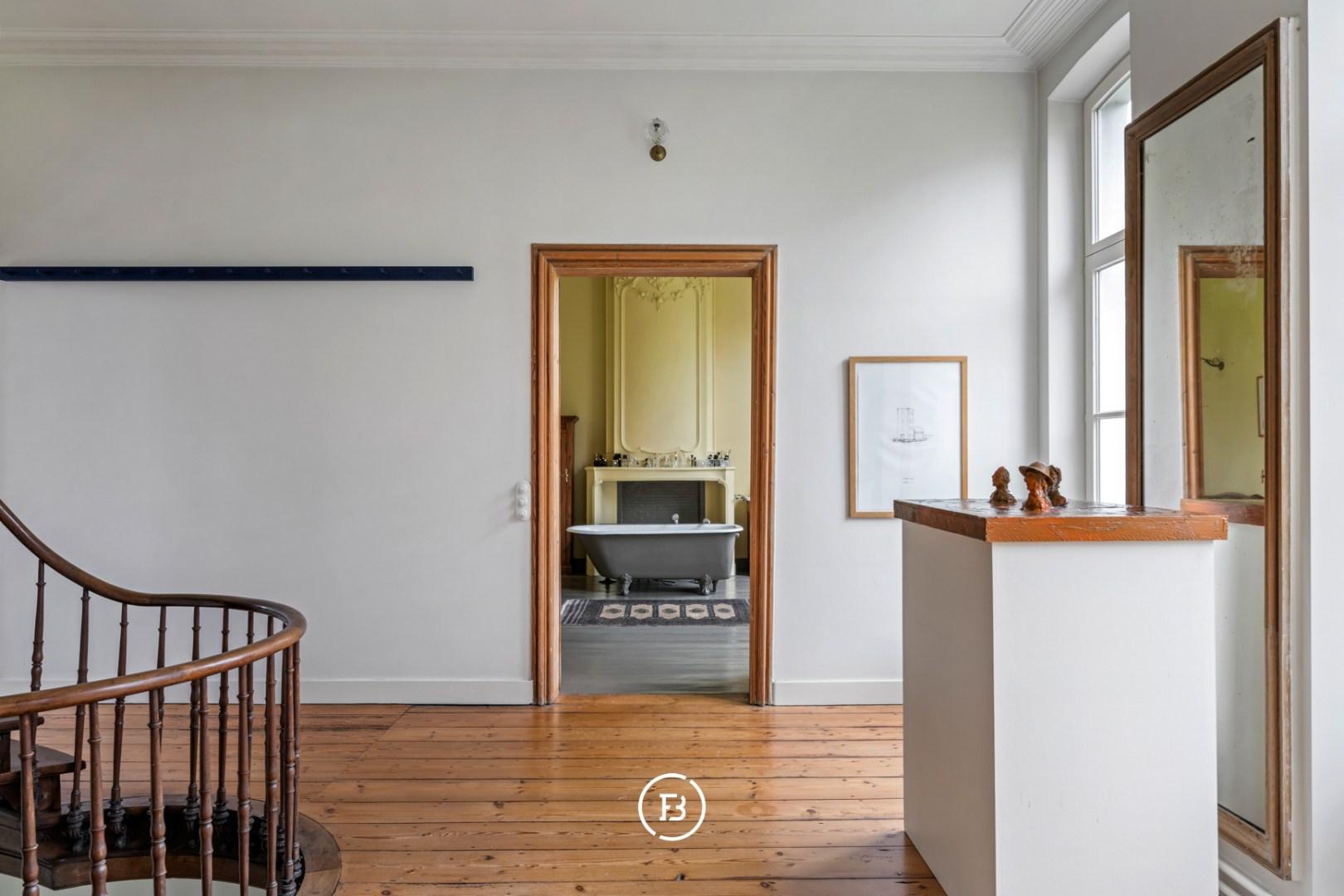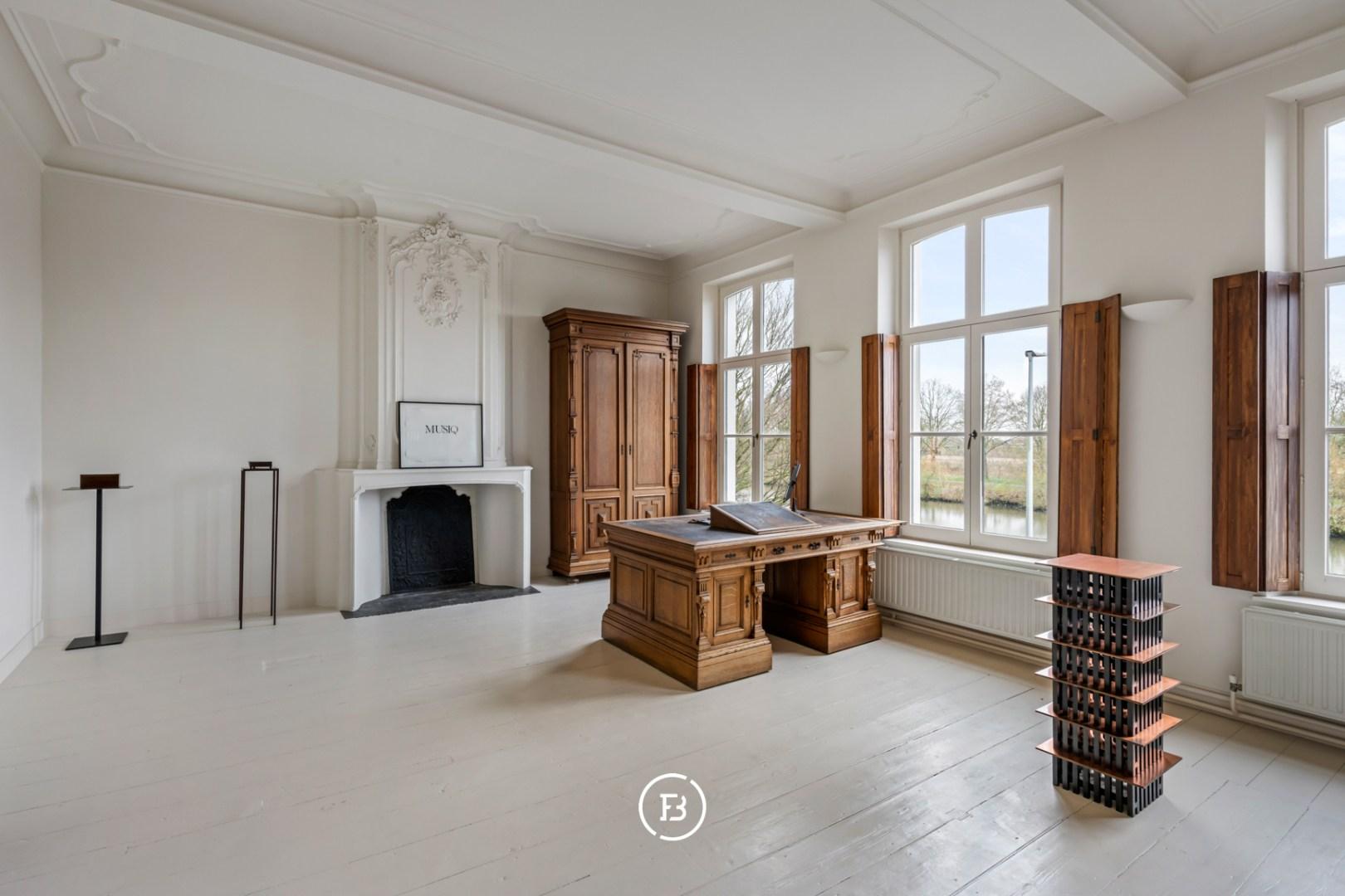 Dit uitzonderlijke kasteeldomein, met bijhorende verhuurde conciërgewoning, is gelegen op een royaal perceel van 12.401 m² en wordt omringd door een prachtig aangelegde parktuin die volledige privacy en rust waarborgt. Het kasteel belichaamt een zeldzame harmonie tussen historische grandeur, hedendaags wooncomfort en absolute sereniteit. Het is ingeplant in een landschapspark in romantische stijl, met een schilderachtige vijver en brugjes, een uitzonderlijk goed bewaarde ijskelder en een imposante eeuwenoude ceder. Bij het betreden van het hoofdgebouw wordt u verwelkomd in een statige inkomhal die meteen de grandeur van het huis onthult. Imposante ruimtes, hoge plafonds en grote raampartijen zorgen voor een overvloed aan natuurlijk licht en betoverende vergezichten op de tuin. Naast het hoofdgebouw bevindt zich een kwalitatief vernieuwde conciërgewoning, met ingang en parking buiten de toegangspoort. Aansluitend aan de conciërgewoning zijn er twee ruime aangebouwde garages. Een ideale eigendom voor grote gezinnen, vrije beroepen, kantoren, een commerciële uitbating of een combinatie van majestueus wonen en werken.
