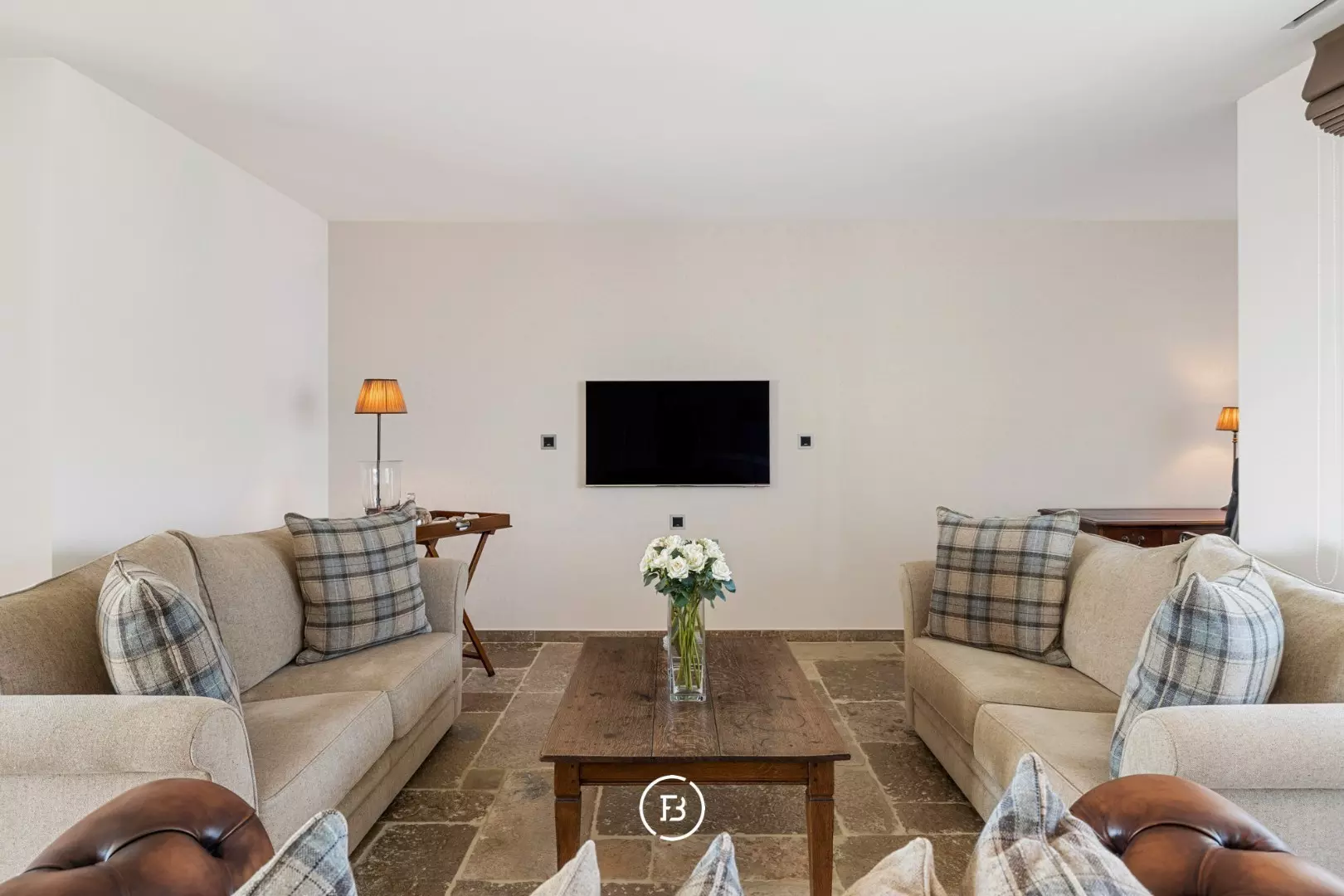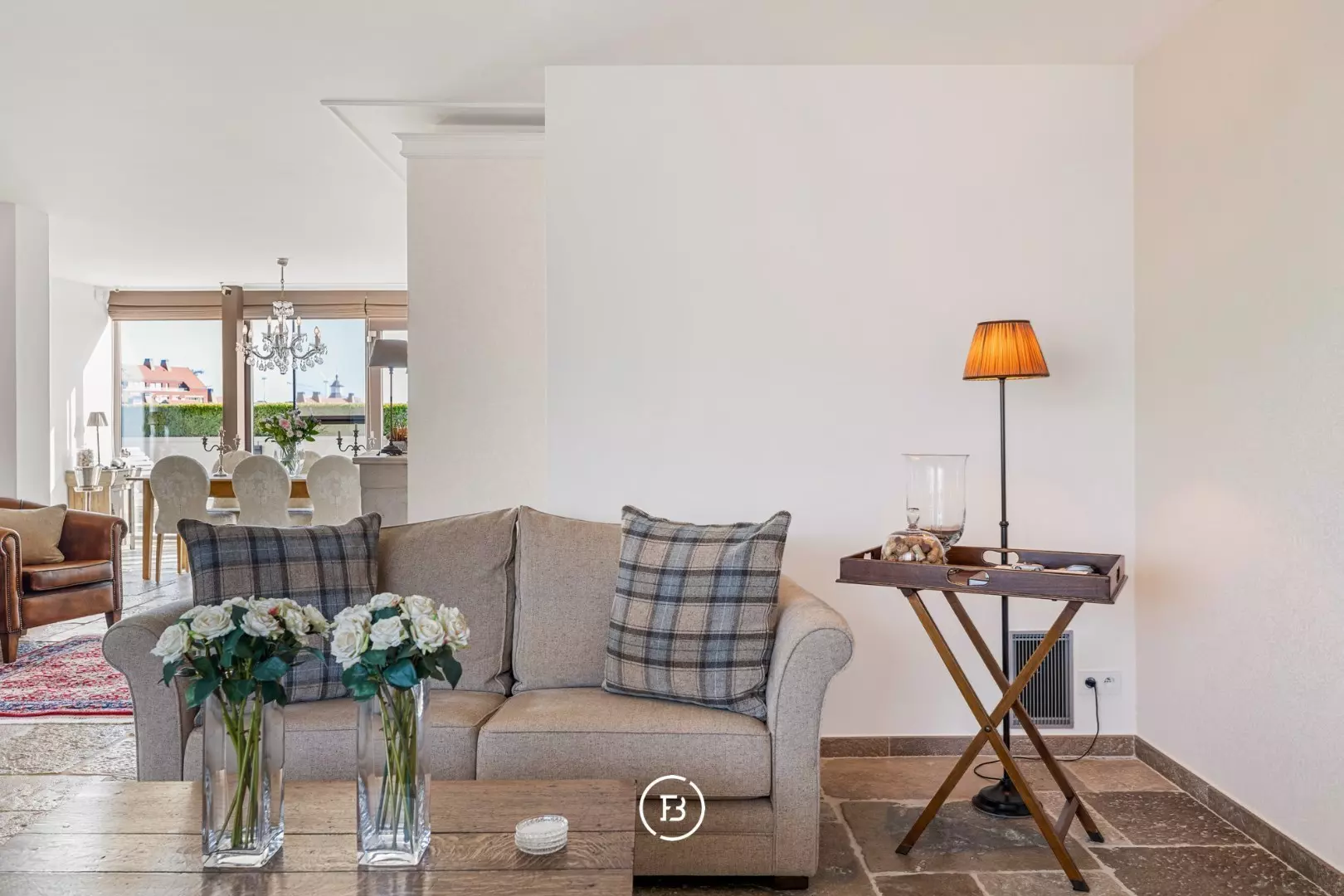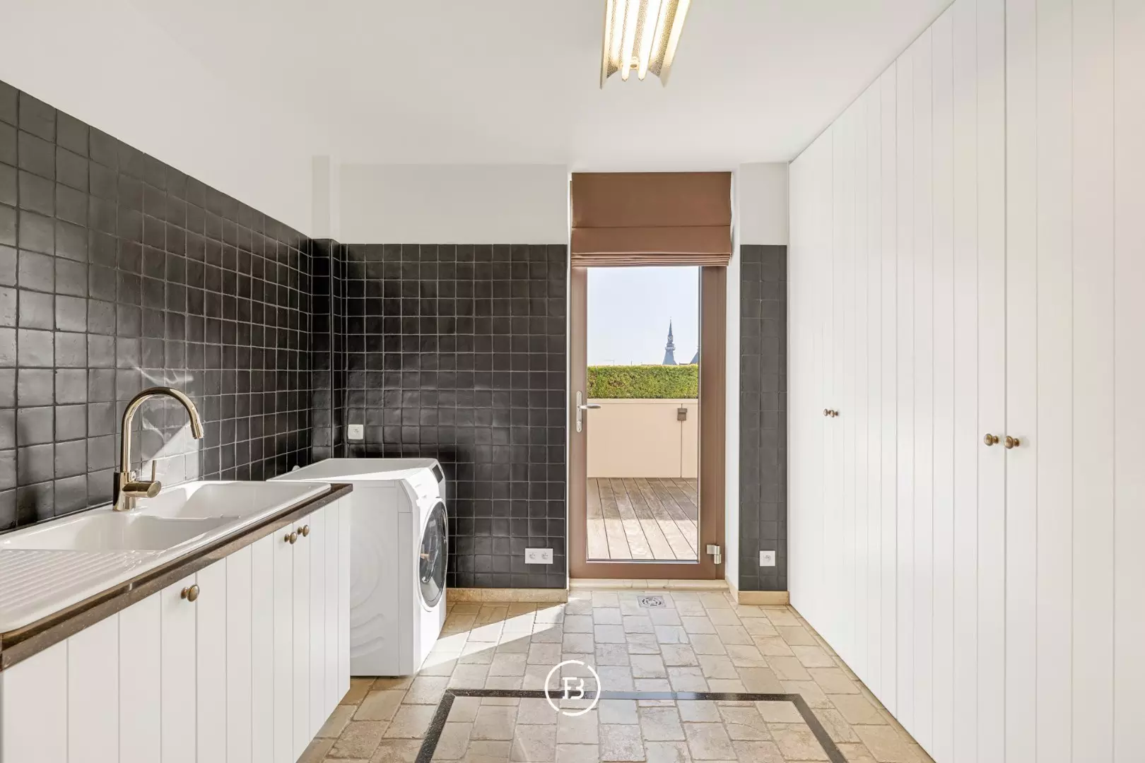 In de lichtrijke leefruimte ontmoeten hoogwaardige materialen en doordachte architectuur elkaar. Authentieke bourgondische dallen, een Franse stenen schouwmantel met gashaard en subtiele maatwerkintegraties creëren een warme, huiselijke sfeer. Dankzij de grote raampartijen geniet u van een vloeiende overgang naar de twee prachtige terrassen, samen goed voor 56 m² aan pure buitenbeleving.