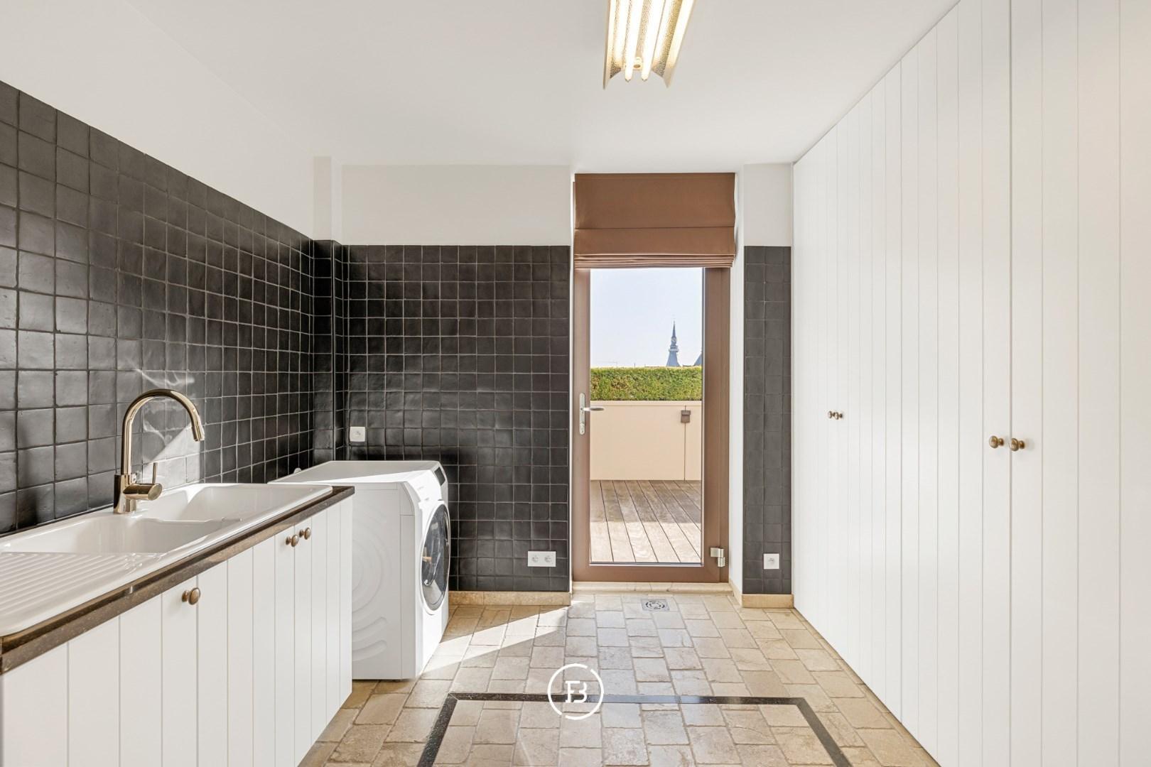 Bij aankomst brengt de privétoegang via de lift u rechtstreeks naar de ruime inkomhal. Deze is voorzien van een discrete vestiaire en gastentoilet.