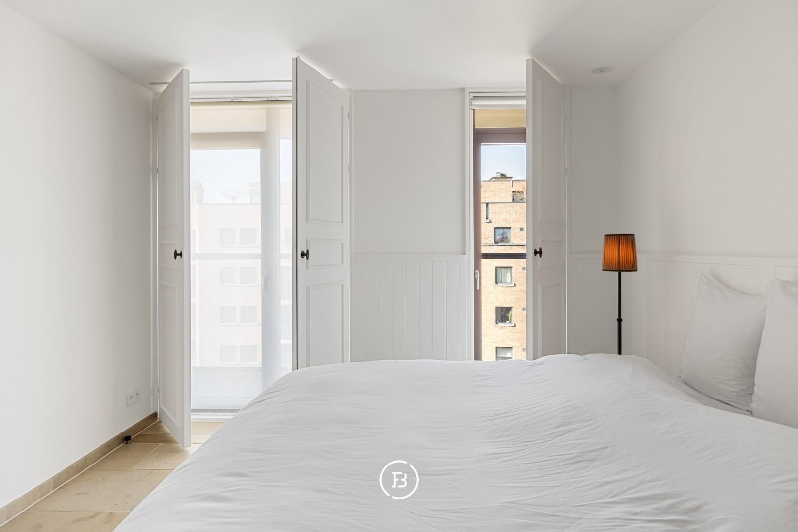 De tweede slaapkamer beschikt over een op maat ontworpen dressing, die voorzien is van een ingemaakt bed, om alle ruimte te benutten.