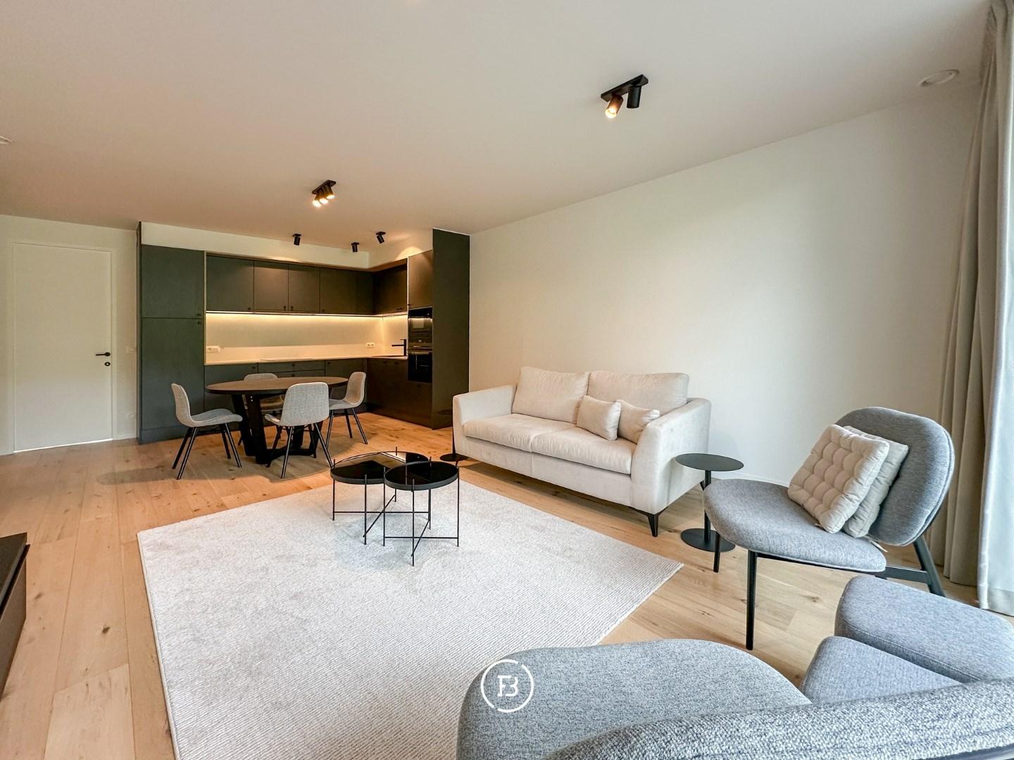 U betreedt het appartement via een ruime inkomhal, voorzien van een gastentoilet en een aparte berging. Bij het binnenkomen ervaart u meteen de openheid gekenmerkt door een ruime, lichtrijke leef- en eetruimte. De grote raampartijen zorgen voor een overvloed aan natuurlijke lichtinval waardoor een ruim gevoel gecreëerd wordt. De open, volledig uitgeruste keuken is voorzien van alle moderne apparatuur en vormt een harmonieus geheel met de leefruimte. Vanuit de woonkamer heeft u toegang tot een rustig, zuidgericht terras – een ideale plek om te ontspannen.