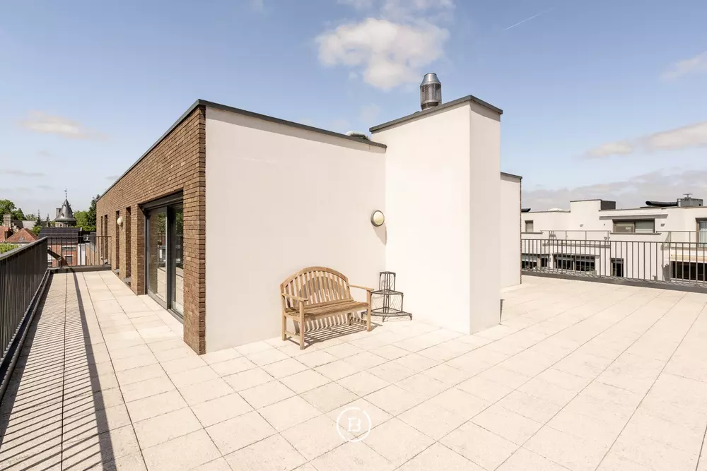 In residentie LESKOO I, op de vijfde verdieping en vlak bij het centrum van Oudenaarde, bevindt zich dit uitzonderlijke penthouse van 129 m² met een rondom liggend terras. De combinatie van ruimte, licht en privacy maakt dit appartement een zeldzame kans voor wie comfortabel en rustig wil wonen op een centrale locatie. Dankzij de recente bouw (2013) geniet u hier van moderne afwerking, optimaal wooncomfort en een prachtige uitkijk over de omgeving.