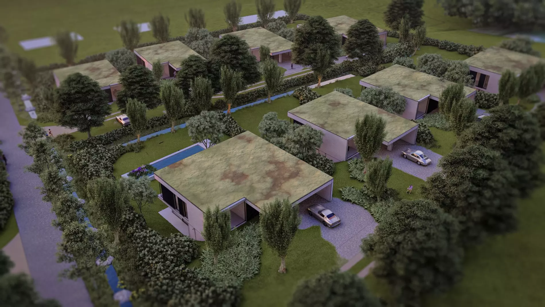 Dit stuk grond is opgedeeld in 4 loten: Lot 1 (499m²) - Lot 2 (499m²) - Lot 3 (787m²) - Lot 4 (1033m²)
