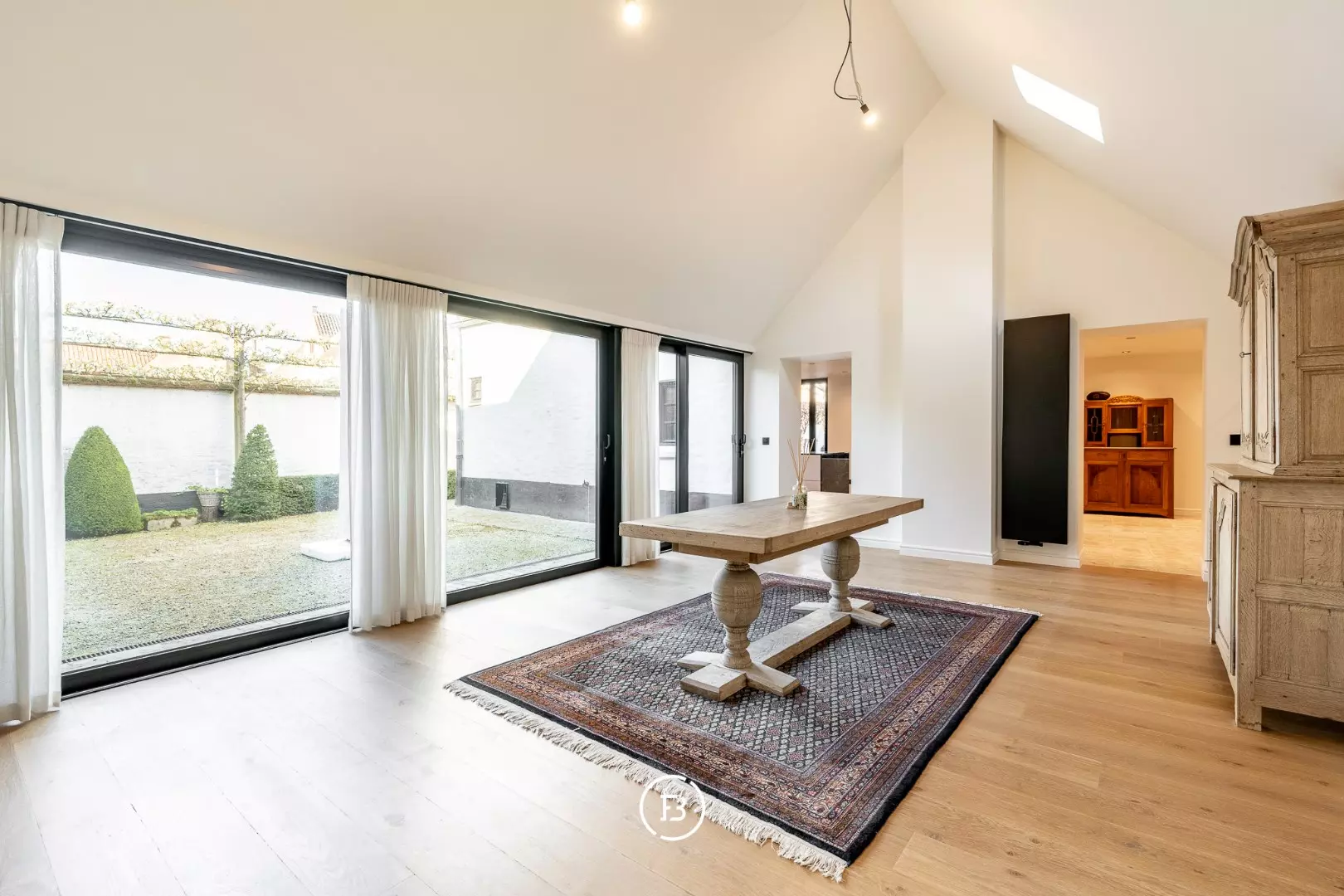 Via een royale inkomhal met gastentoilet betreedt u de woning. Op het gelijkvloers bevindt zich een lichtrijke leefruimte met open eetplaats, voorzien van een groot schuifraam dat uitgeeft op het zonneterras. Aansluitend een aparte, gezellige salonruimte en een volledig uitgeruste leefkeuken met toegang tot de tuin – ideaal voor wie houdt van koken en entertainen.