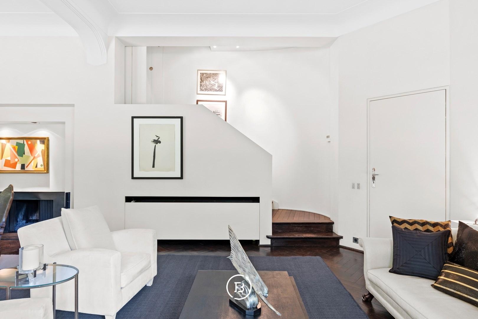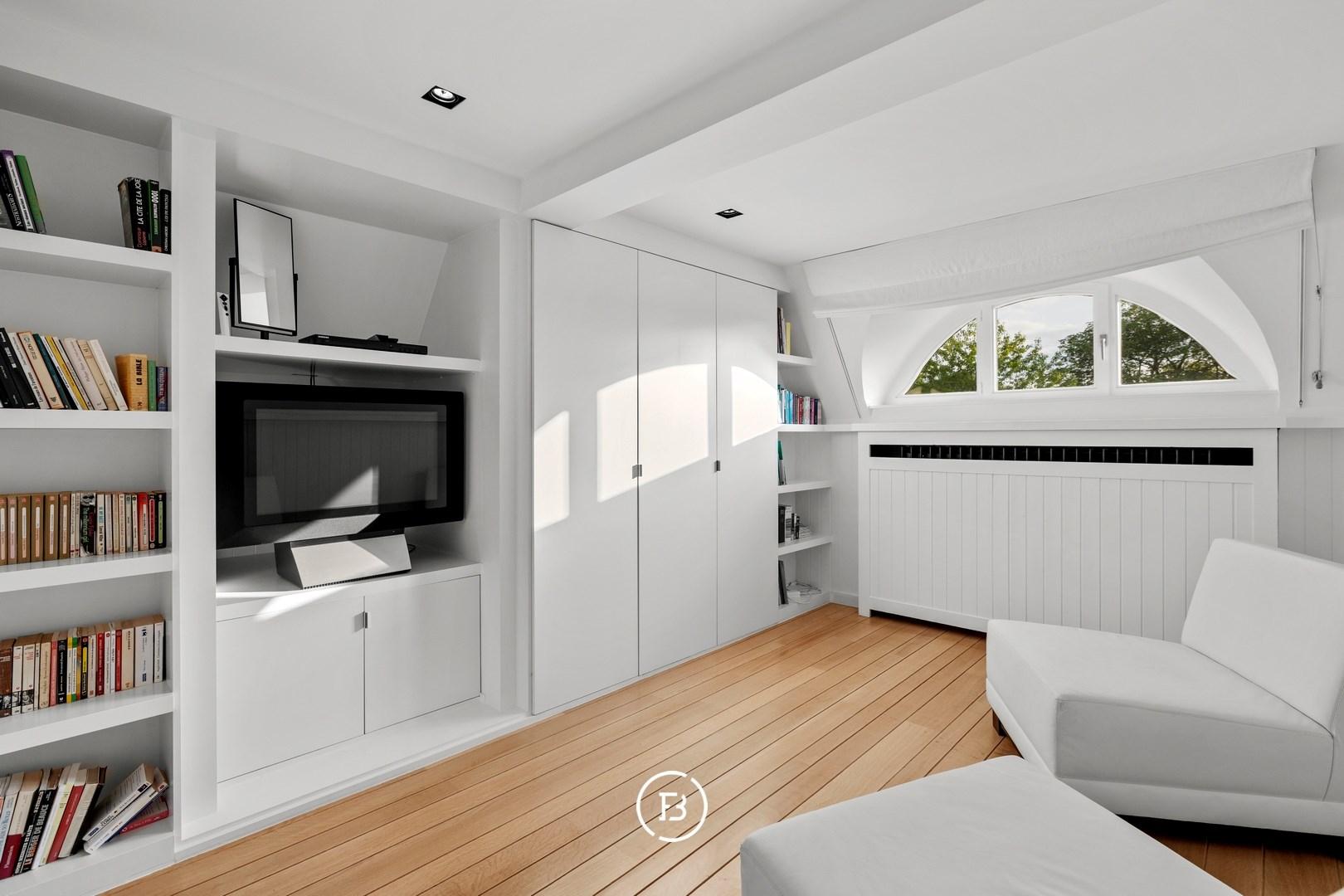 De woning biedt ruime en luxe ontvangstruimten, waaronder een woonkamer met open haard, een eetkamer, en een volledig ingerichte keuken met ontbijthoek. Daarnaast is er een grote werkkamer met een salon. Op de eerste verdieping bevindt zich de ouderlijke suite, met een slaapkamer, salon, dressing en badkamer. Verder is er een tweede slaapkamer met aangrenzende badkamer en terras. Op de tweede verdieping bevinden zich nog twee slaapkamers een badkamer.