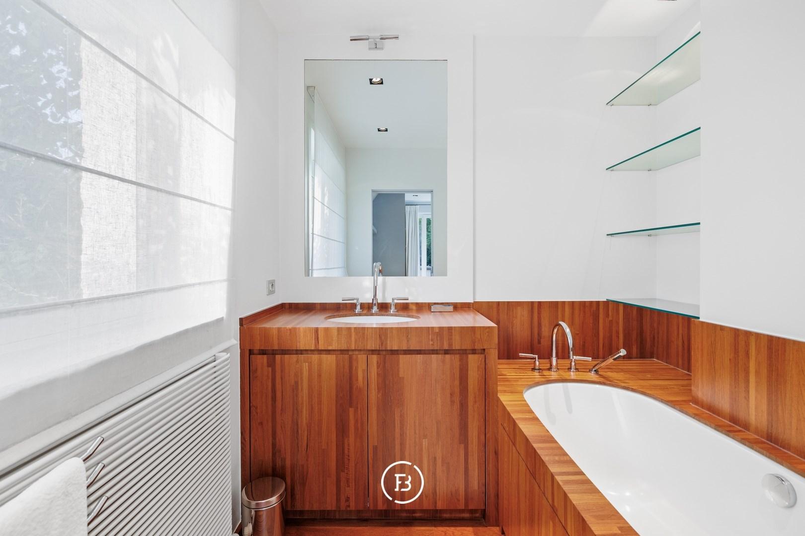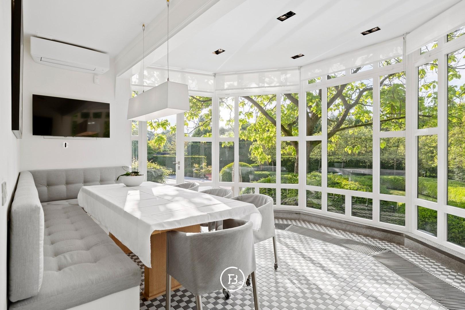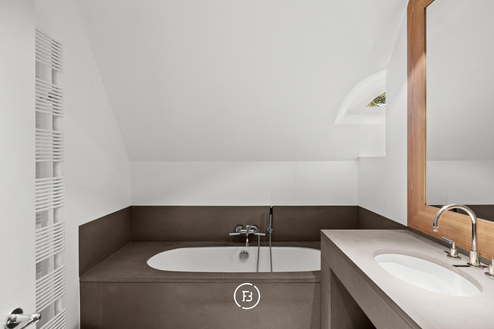 Sint-Genesius-RodeDeze prachtige villa, gebouwd in 1907 onder het toeziend oog van Fernand Bodson, is gelegen aan de rand van Ukkel en Sint-Genesius-Rode. Het resultaat is een indrukwekkende eigentijdse woning met een bewoonbare oppervlakte van 630 m², genesteld op een ideaal georiënteerd perceel van 70 are, ontworpen door landschapsarchitect Wirtz.